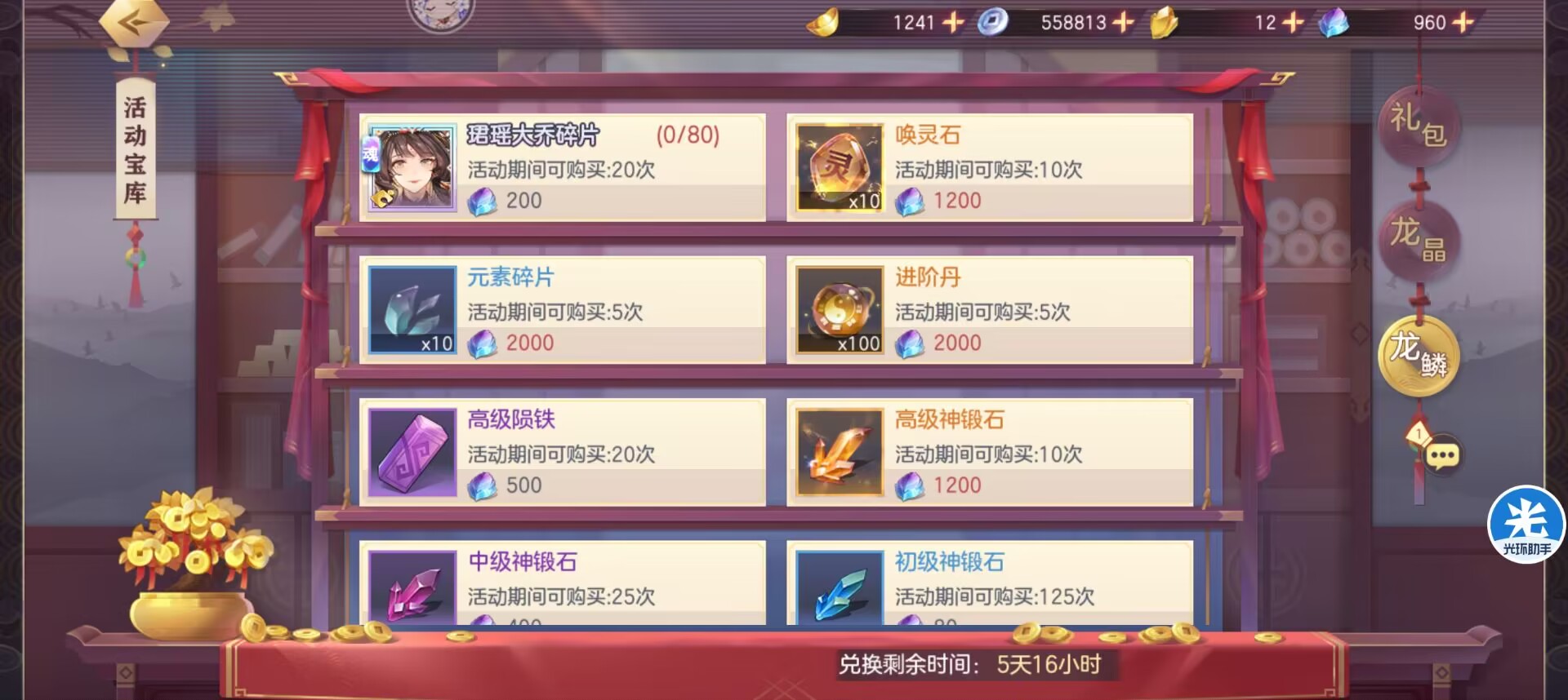 至于【龙鳞商店】可先不急着兑换。等活动最后一天,在来根据自己最缺哪些材料来兑换就行。