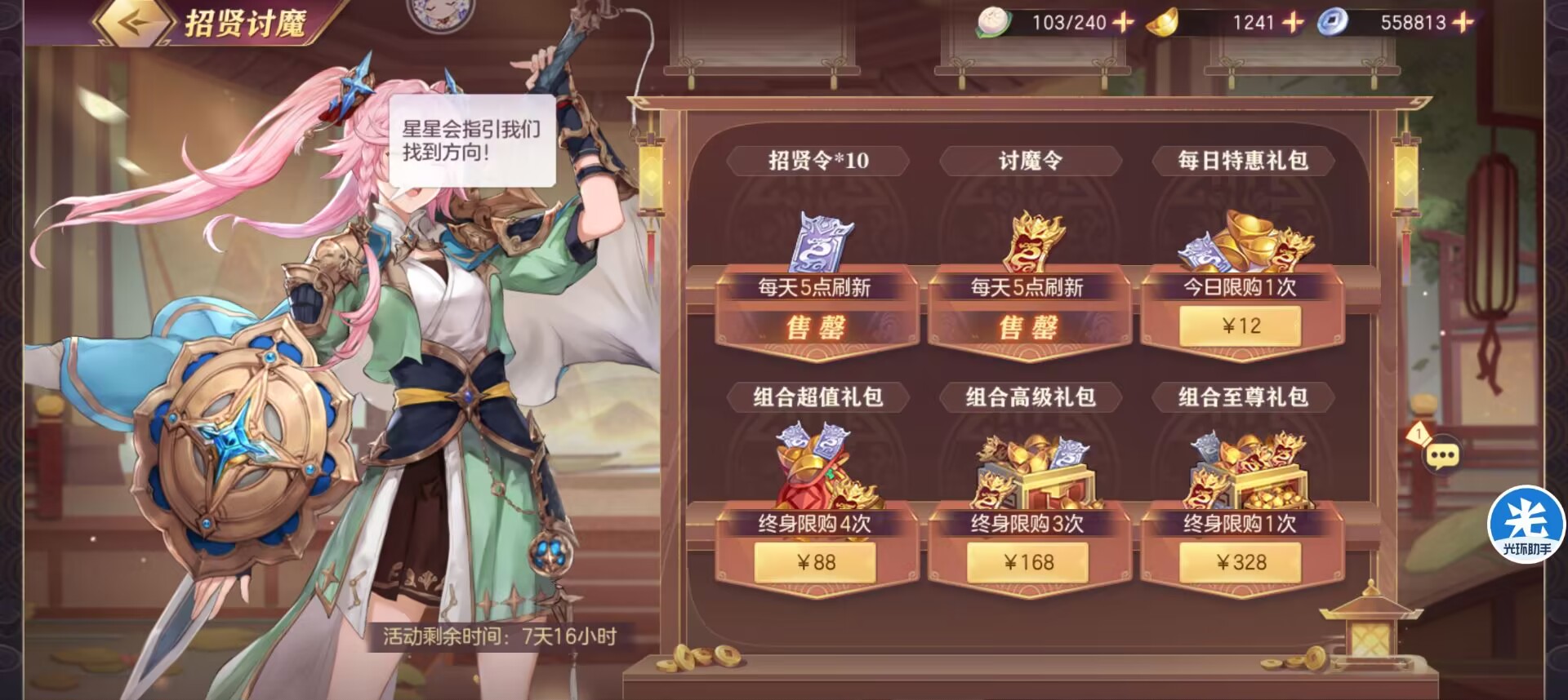 9:【招贤讨魔】商城购买推荐。每天可以领取免费的1次【招贤令】。