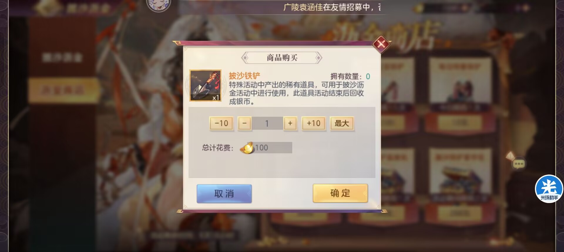 8:【沥金商店】兑换推荐。里面每天可以免费获得1把铁铲,以及每天可用元宝购买15次铁铲。