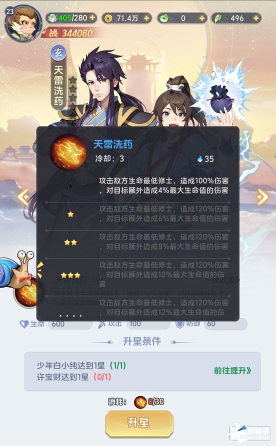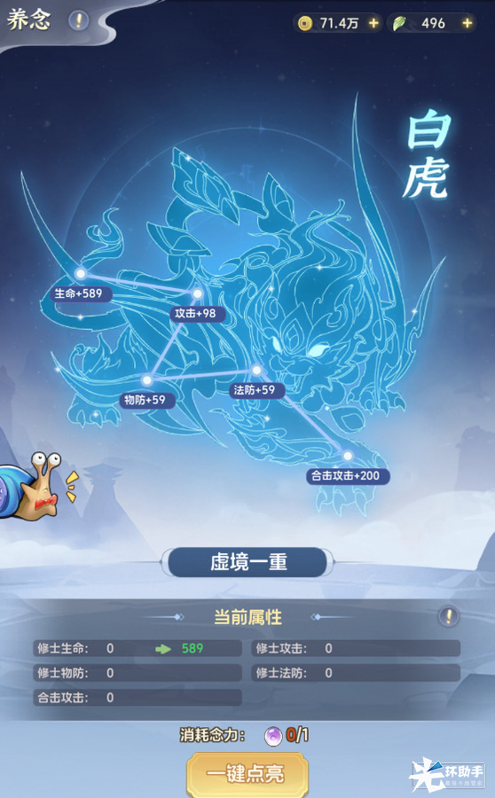 合击技不仅能在战斗中扭转乾坤,也能为上阵的修士提供士气,消耗念力点亮星图可提升境界增加属性。