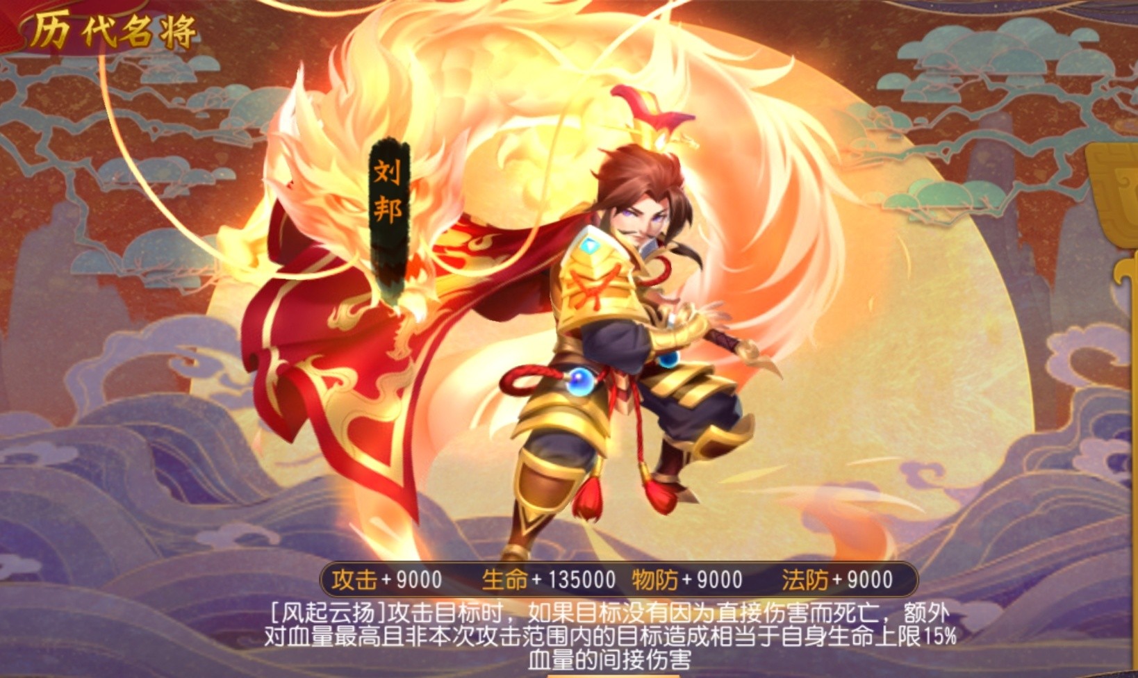 通过历代刘邦的属性描述,给人的错觉就是这个名将应该是一个输出型名将,打间接伤害嘛。鱼头也一直规划,准备一个刘邦的名将给即将需要上阵的输出武将孙策使用,对付一些后排打不死的阵容。