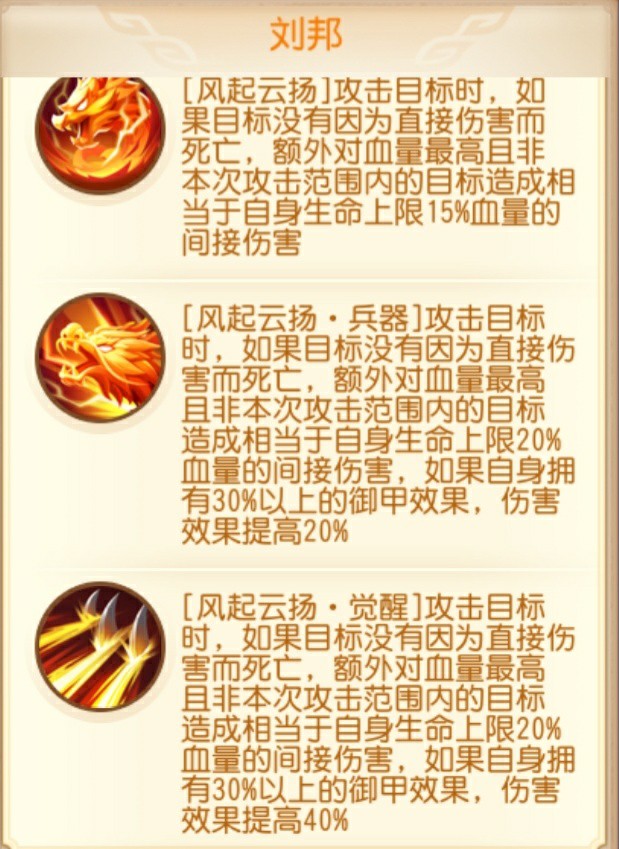如果前期的名将刘邦只有15%的生命上限伤害不够强大,那佩戴上武器及觉醒后,伤害效果会大幅提升。