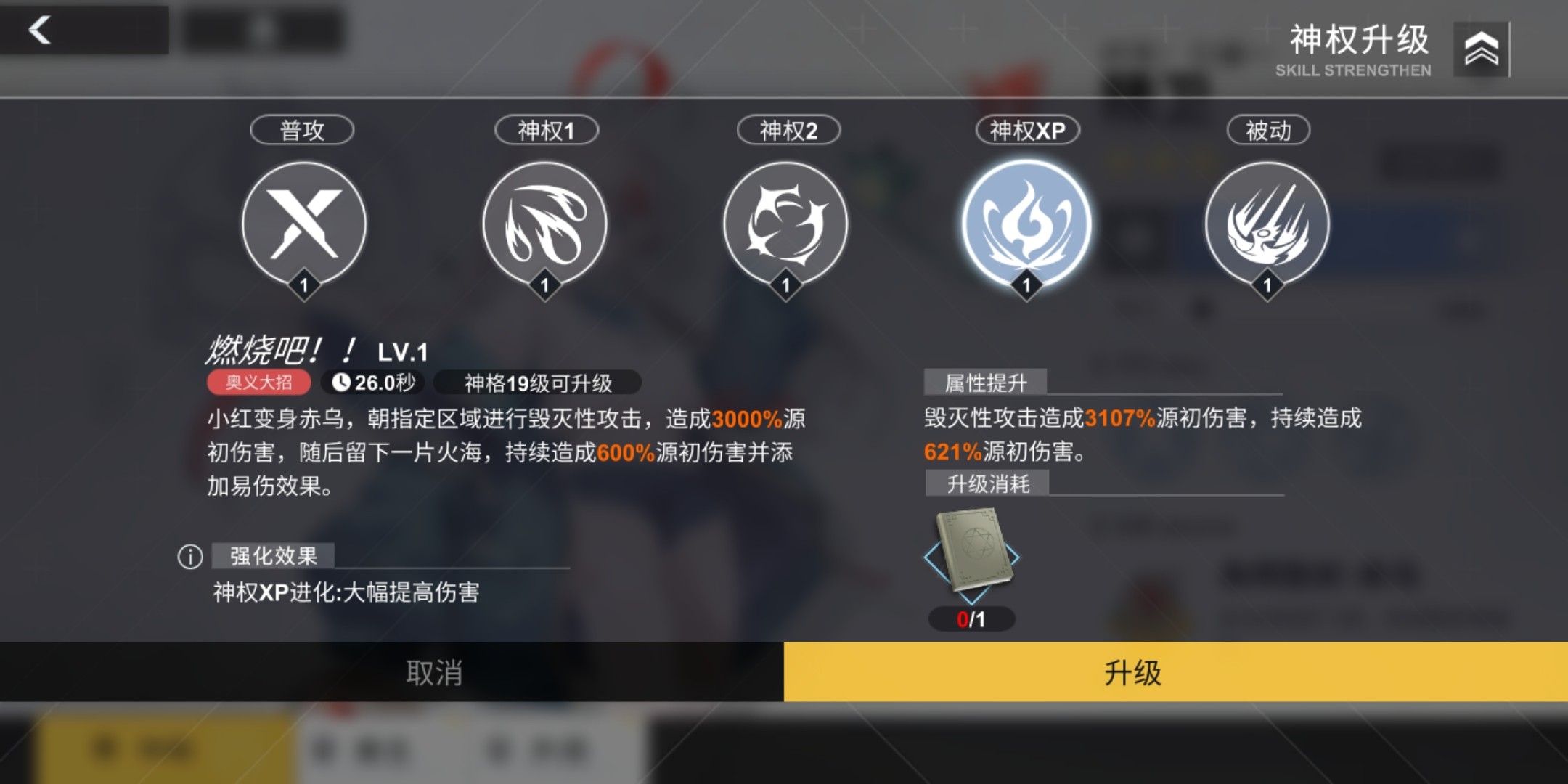 小红变身成赤乌,朝指定区域进行攻击,造成3000%源初伤害,随后留下一片火海,持续造成600%源初伤害并添加易伤
