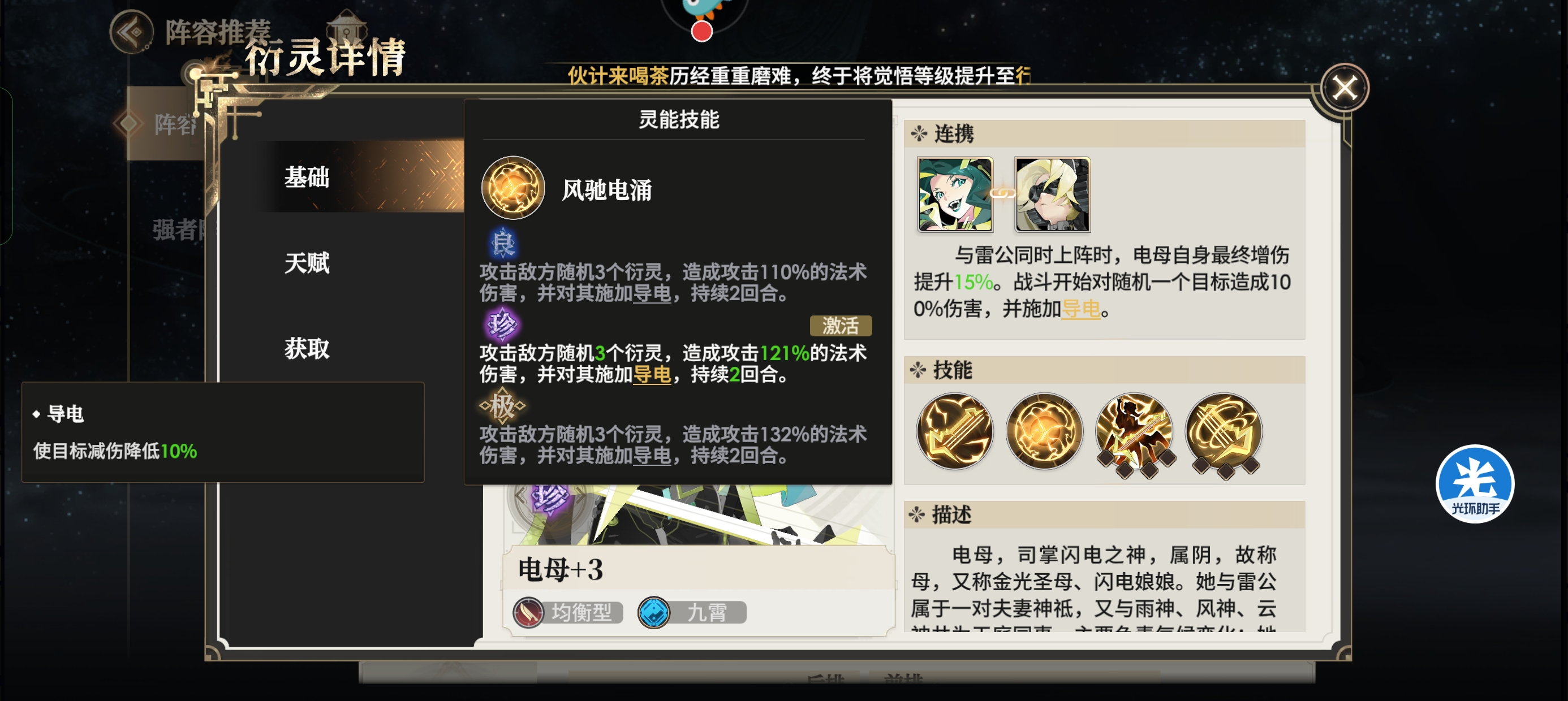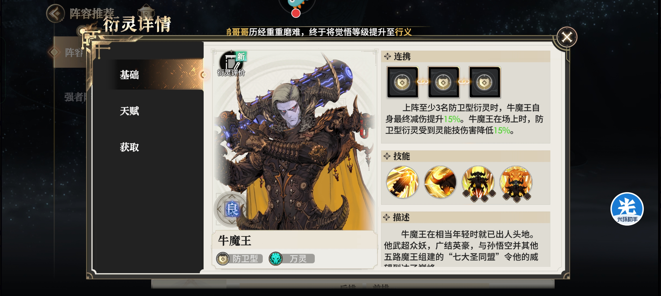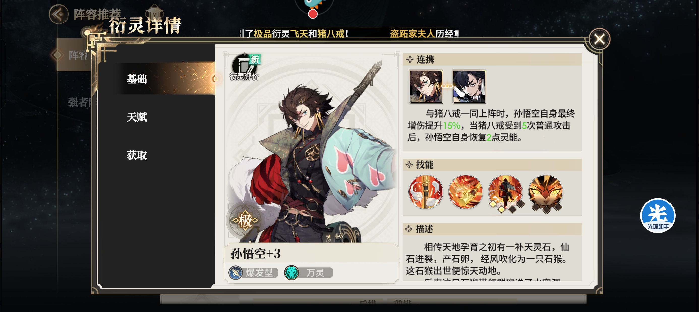 猪八戒激活孙悟空的羁绊,提升伤害和回复灵能。