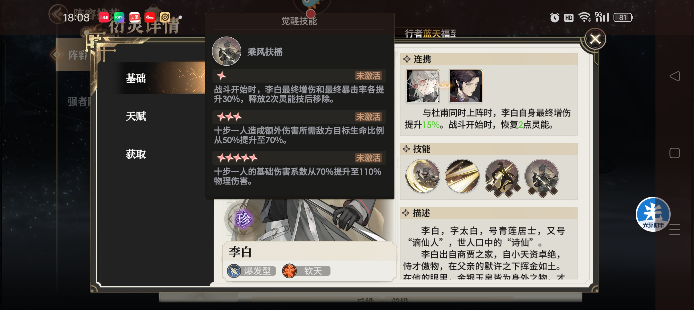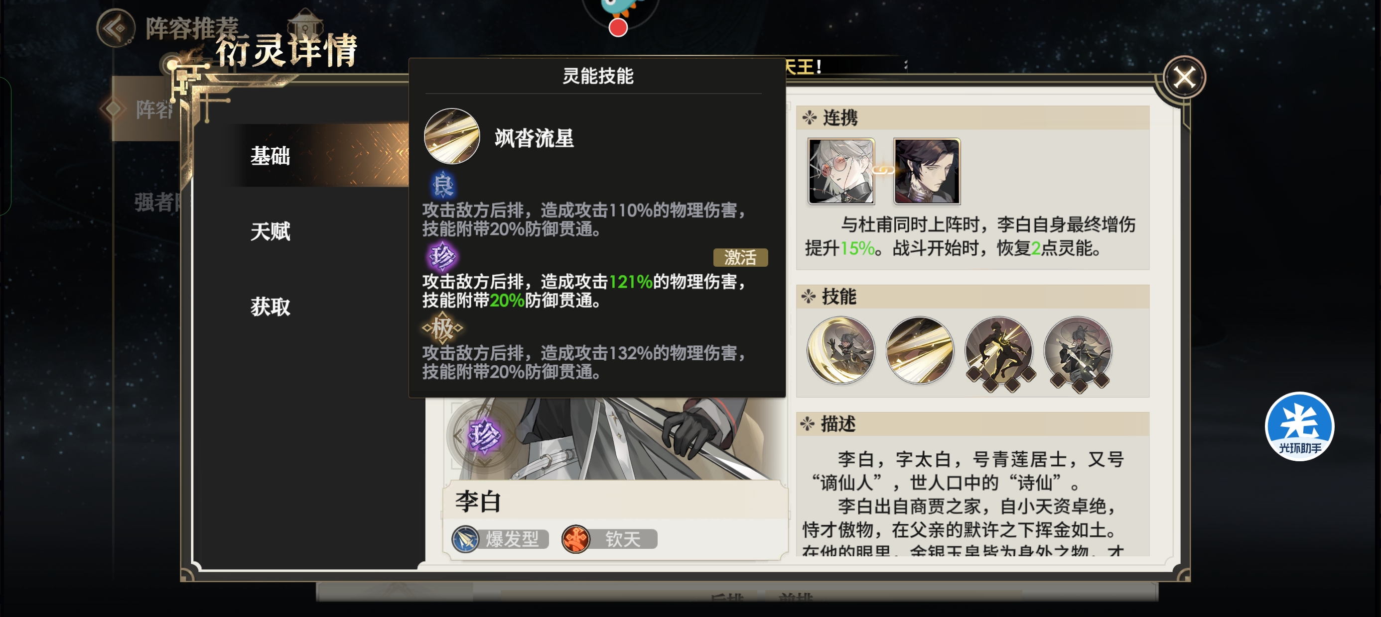 但是李白没有回能机制,只能靠羁绊的回能效果。纯切后阵容前中后就是尽头了。
