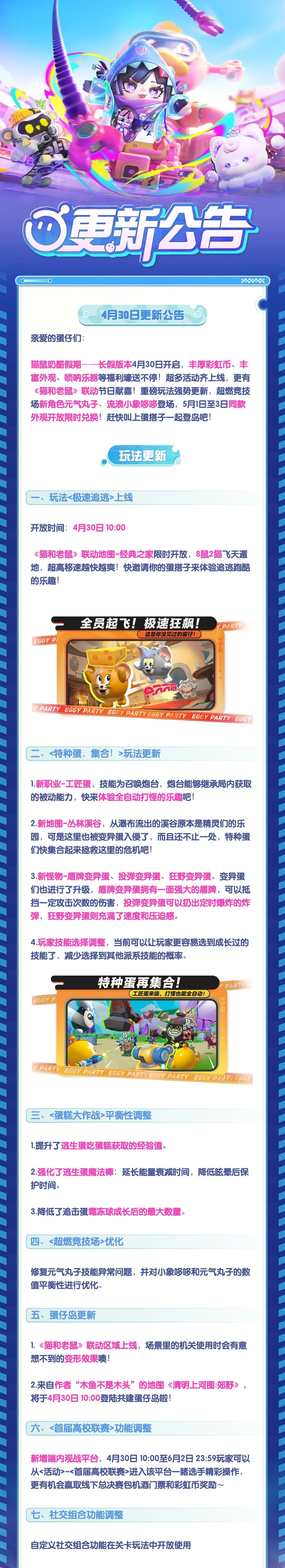 【更新公告】《猫和老鼠》联动上线,特种蛋,集合!四大更新来袭