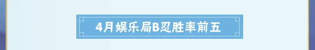 除了风起云涌的段位赛,豚豚还整理了娱乐局的相关数据!4月的娱乐局中,究竟哪些强大忍者是决斗场上的“常胜将军”,又有哪些C忍频频登场,堪称劳模呢?