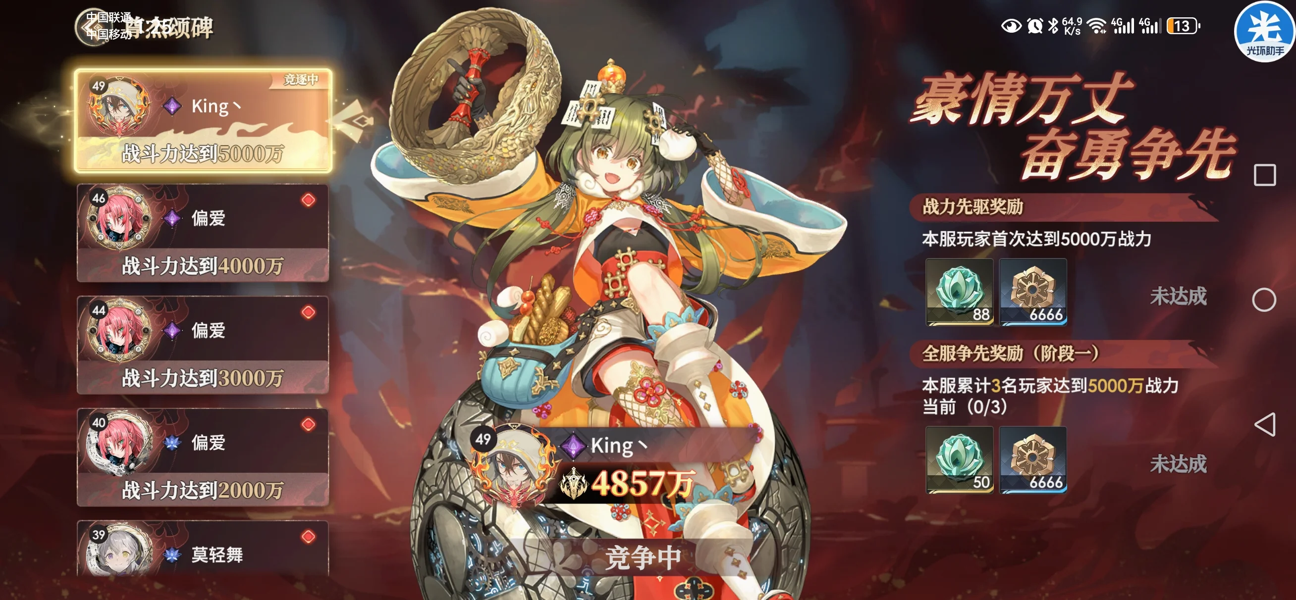 还有再次给大家说一下,争夺全服首通,请做好主线进度滞后的准备。目前已经滞后了1个小节,如果一直争夺的话,后面落后的应该会更多。
