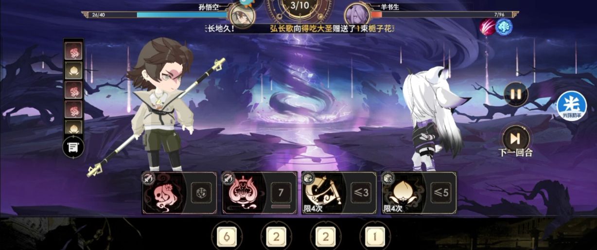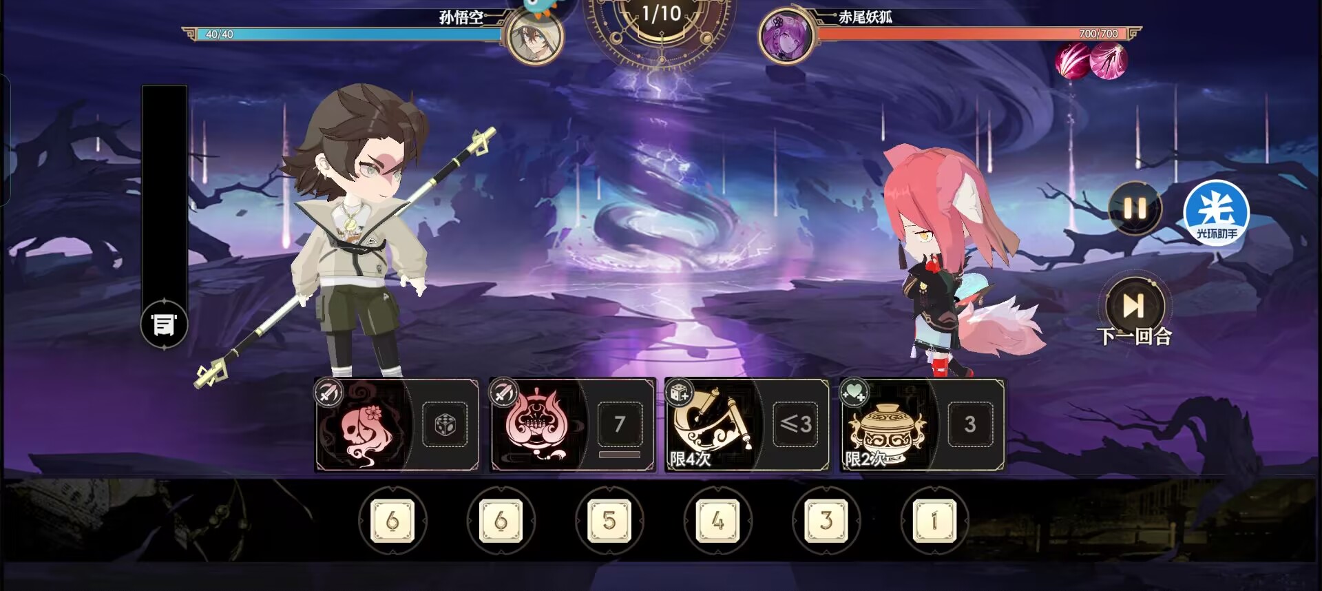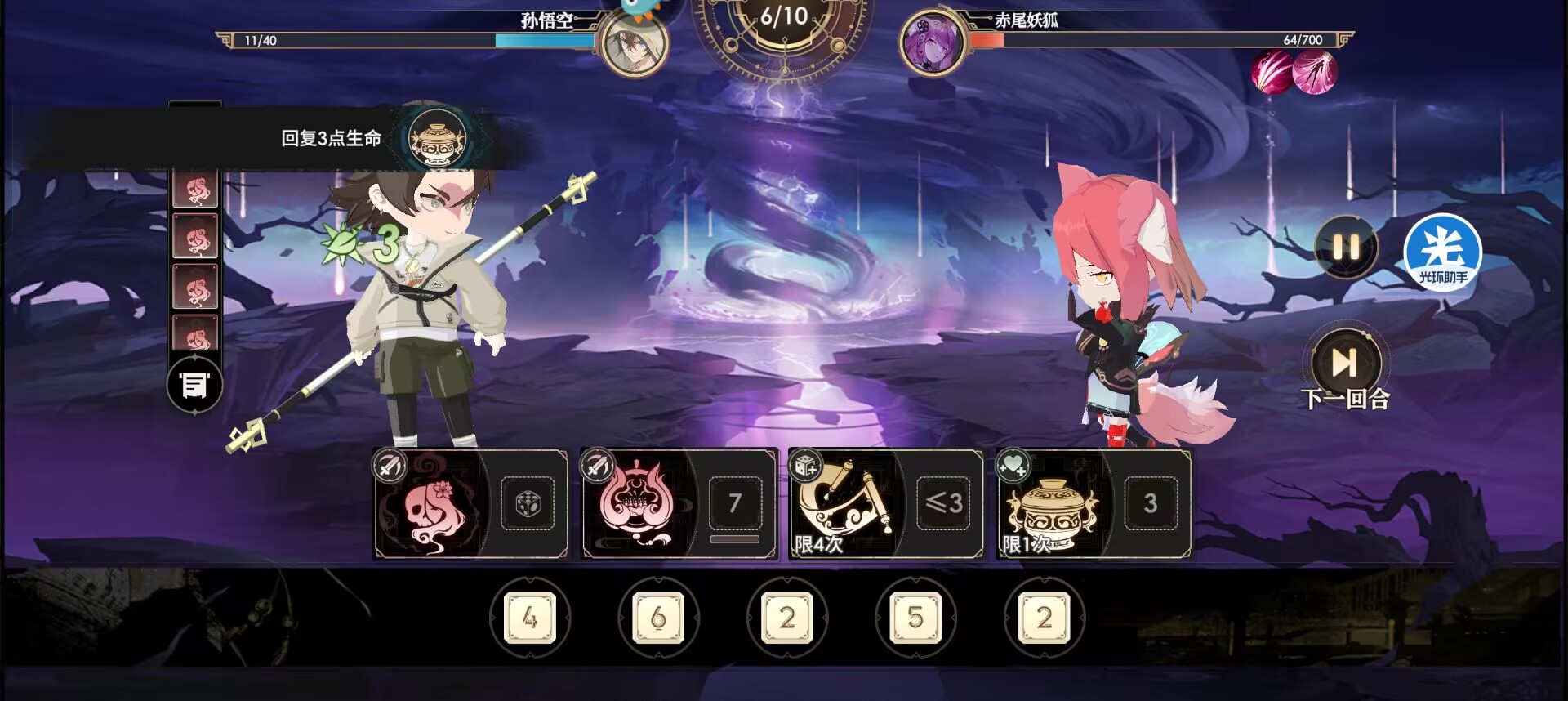 所以要利用她的机制来击杀她,妖狐每回合结束自身都会受到100点数值的伤害。
