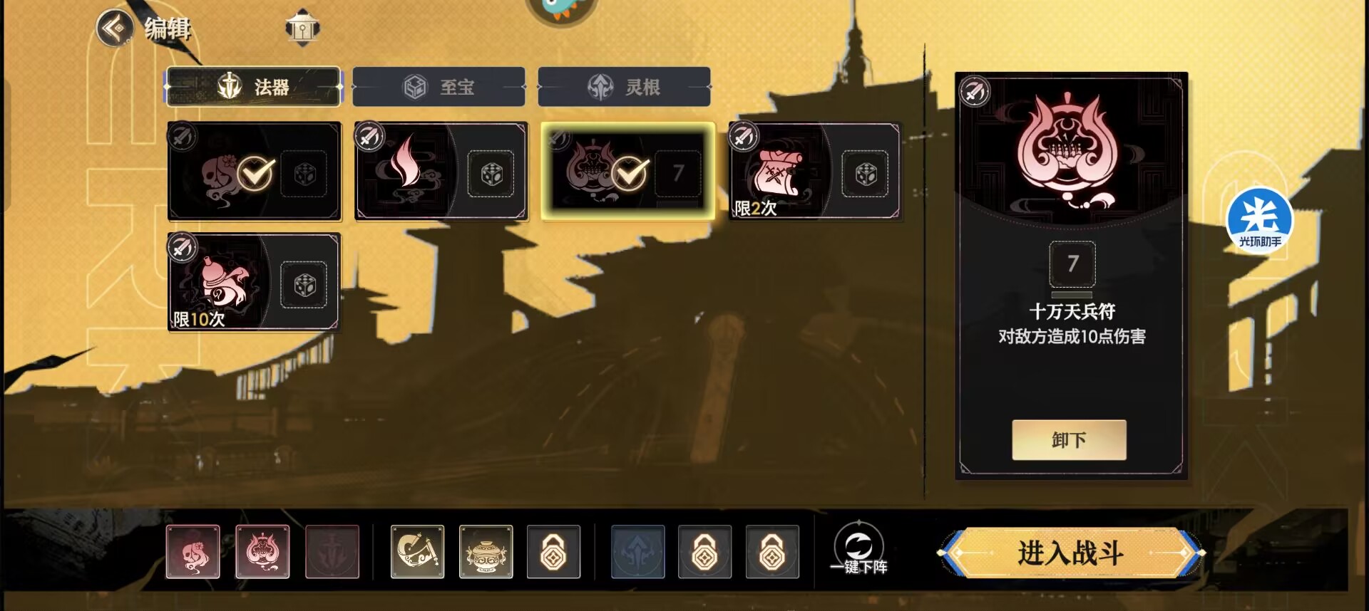 打法思路:开局把低于3点的数值全部喂给圣旨,然后看看那些数值能够组成7点,都喂给天兵符。剩下的给白骨就行。