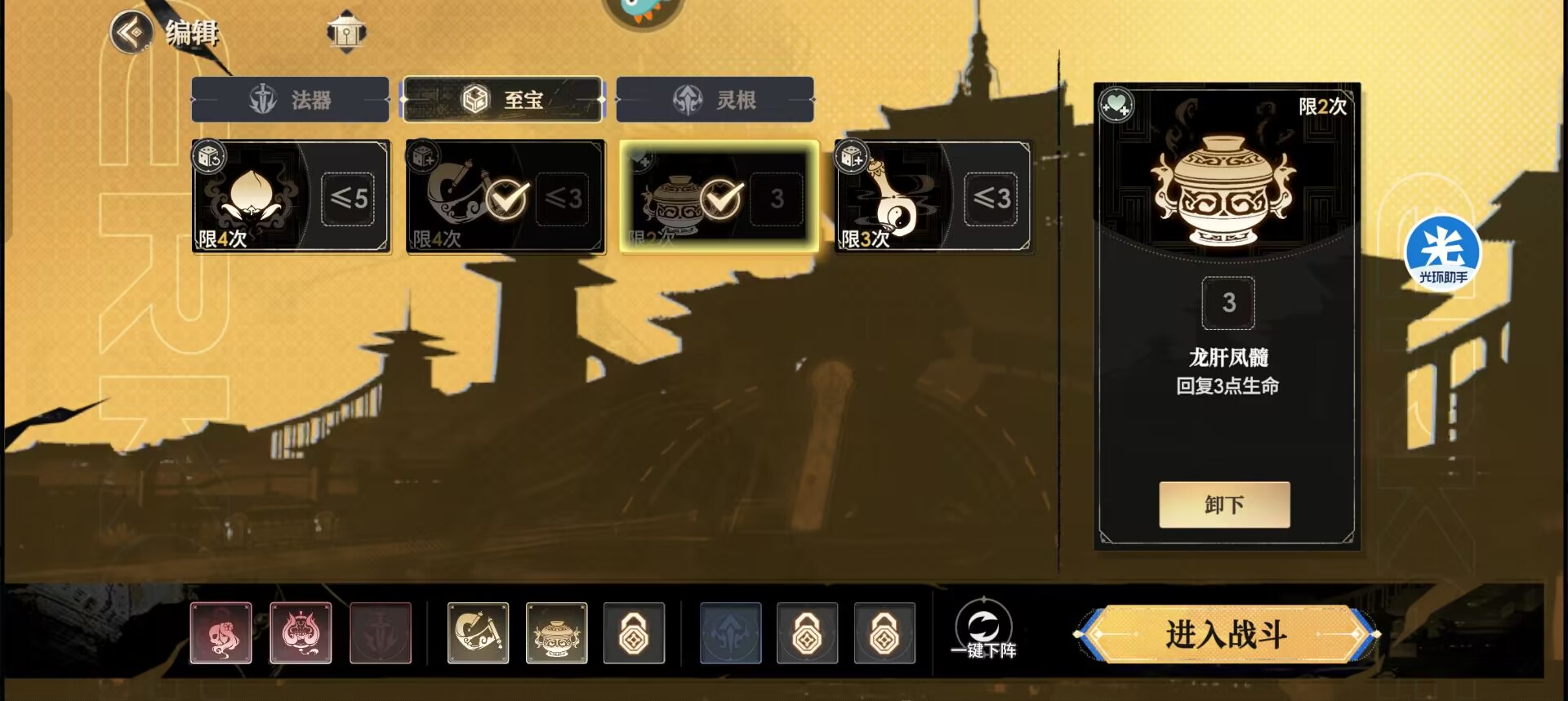 打法思路:灵根的听调很重要,是我们触发高频率攻击的核心。