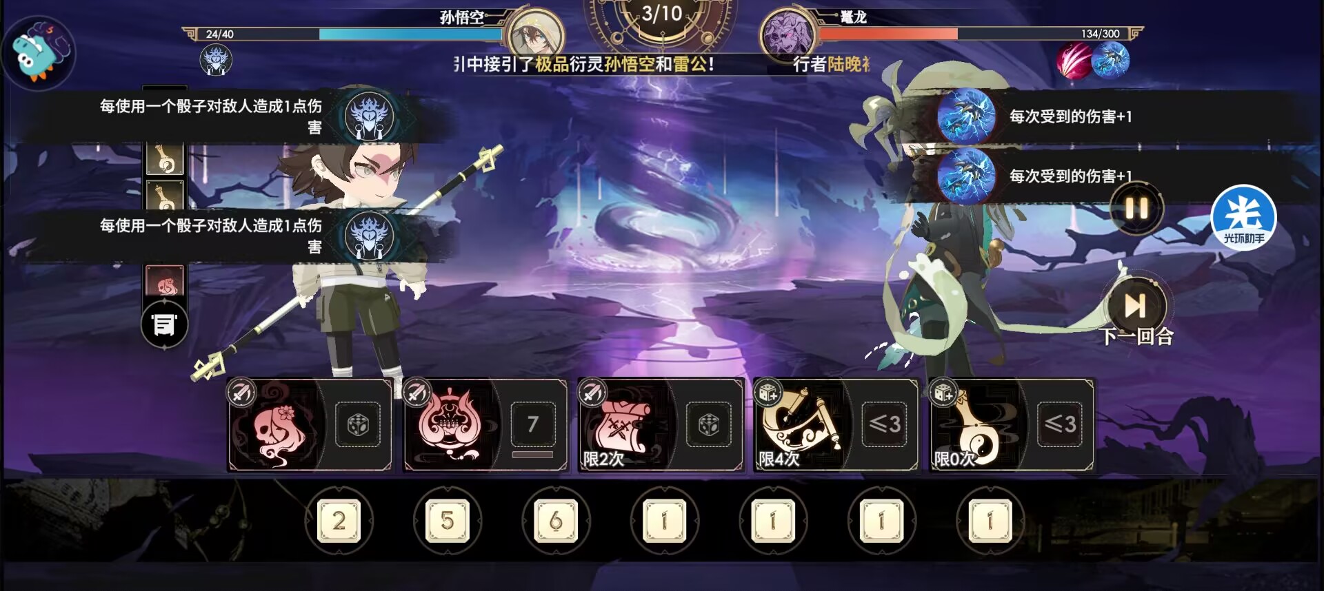 然后最后当雄霸剩的生命不多的时候,后面一定要留1-3的骰子,用来斩杀熊霸。