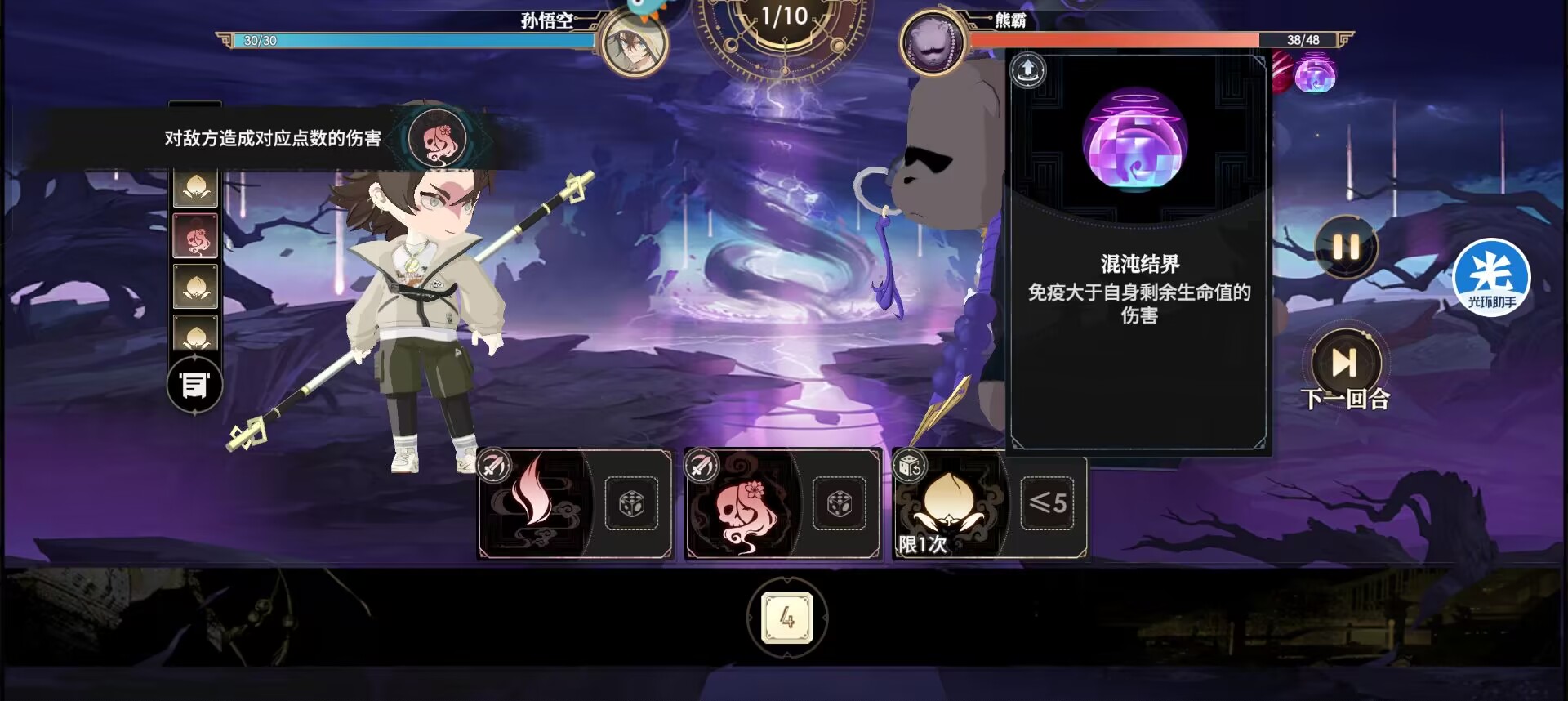 主要打法思路就是每回合一定要触发5次伤害,因为boss受到5次伤害以后,就会额外增加10点伤害。