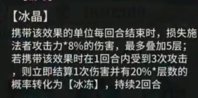 水系增幅:若魔鲸王为水系,则有60%的概率为目标额外附加【冰晶】