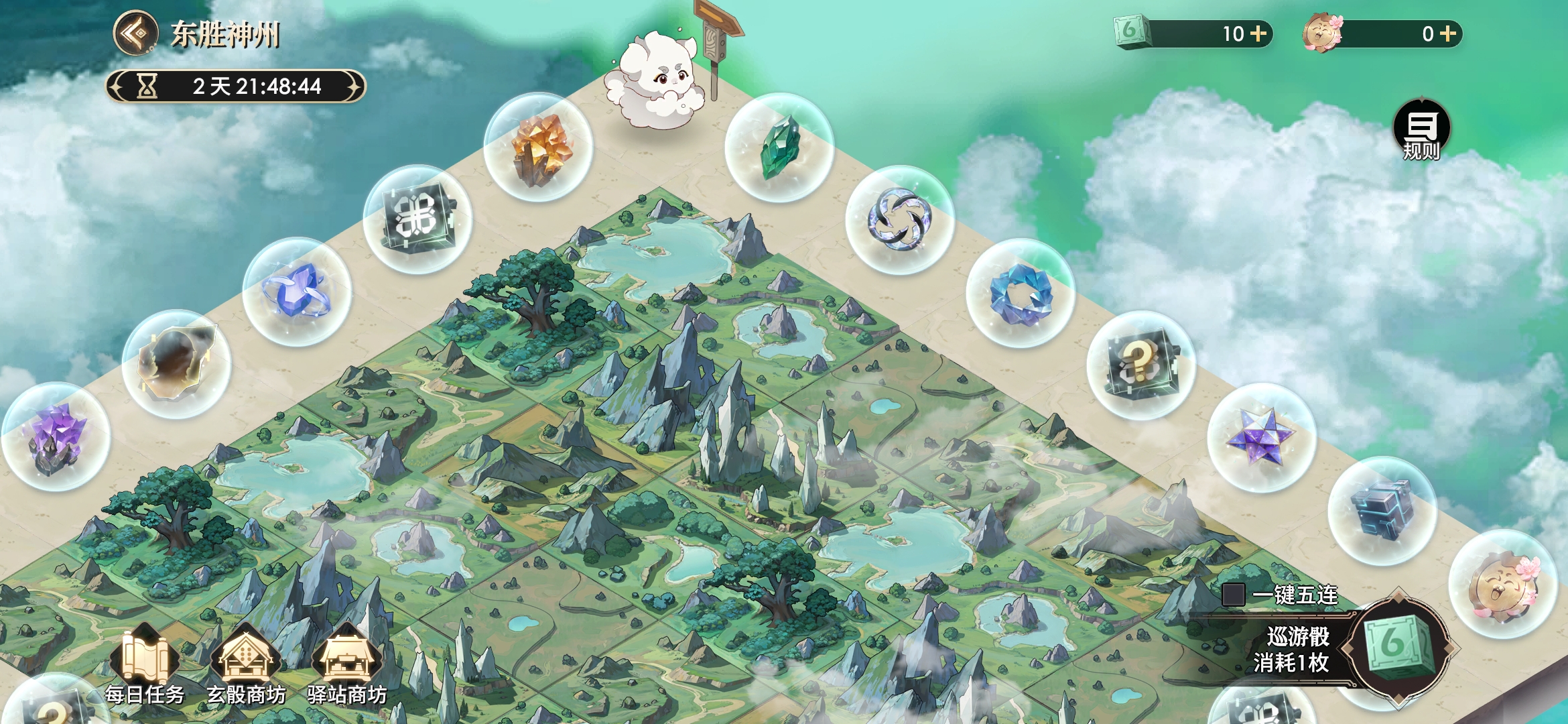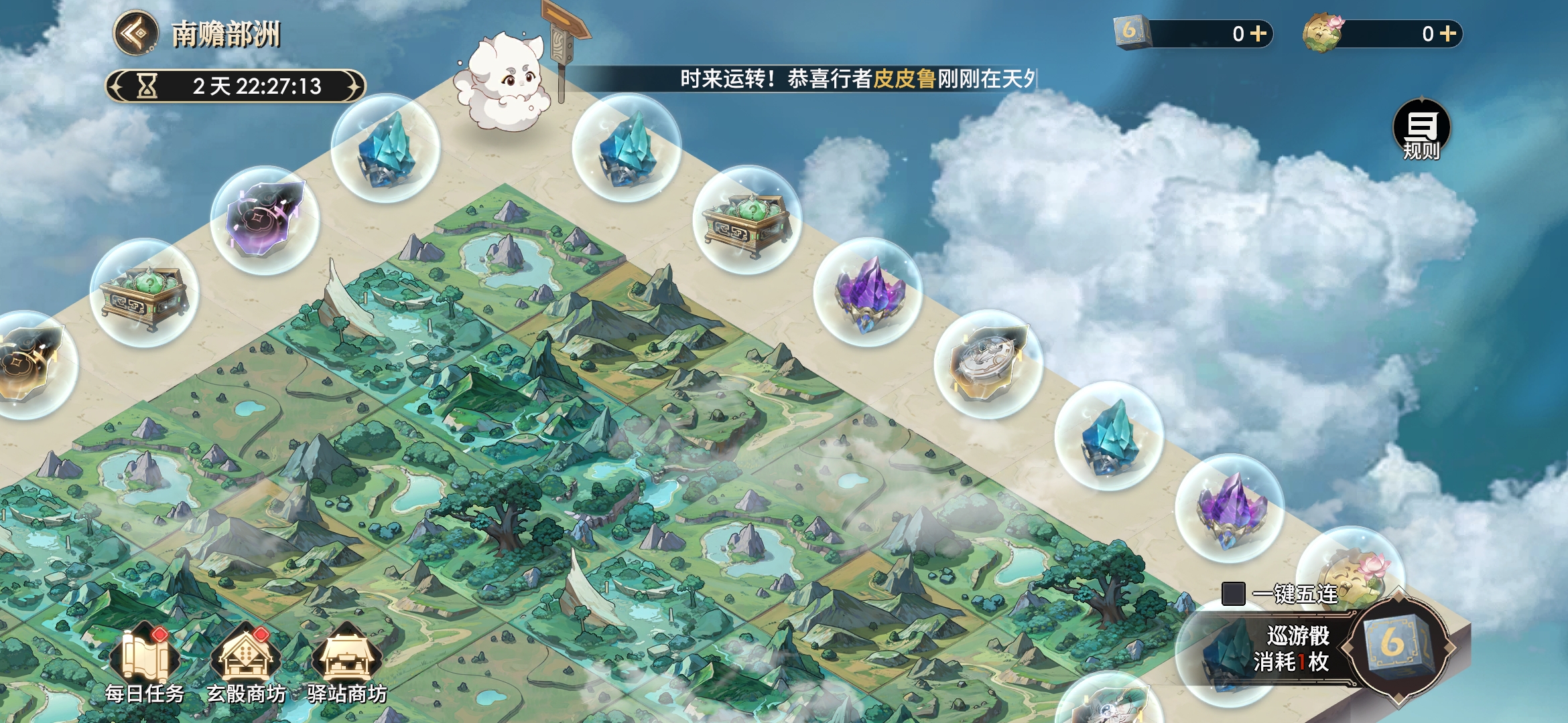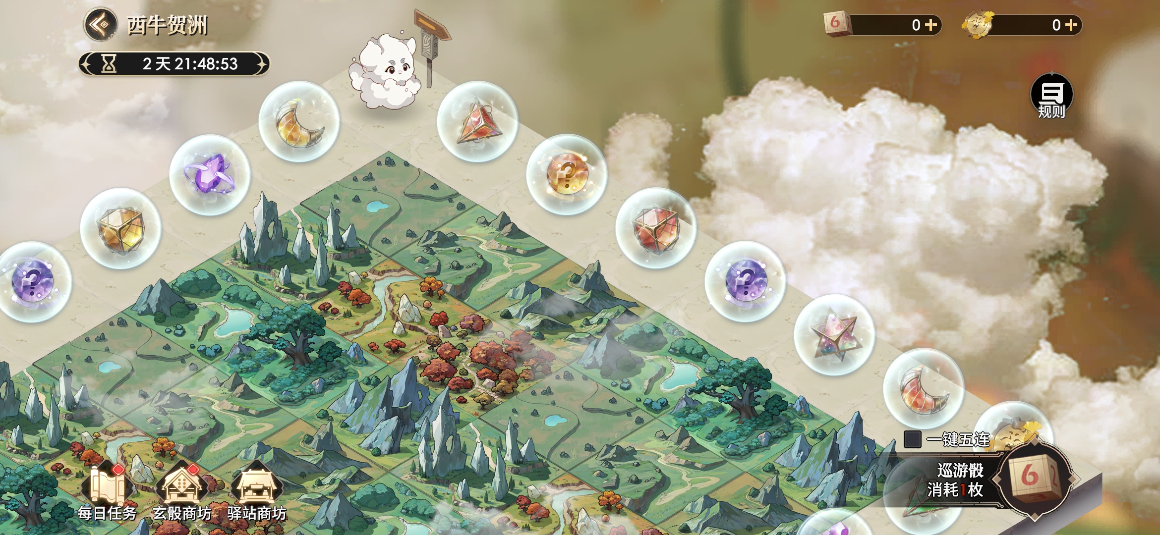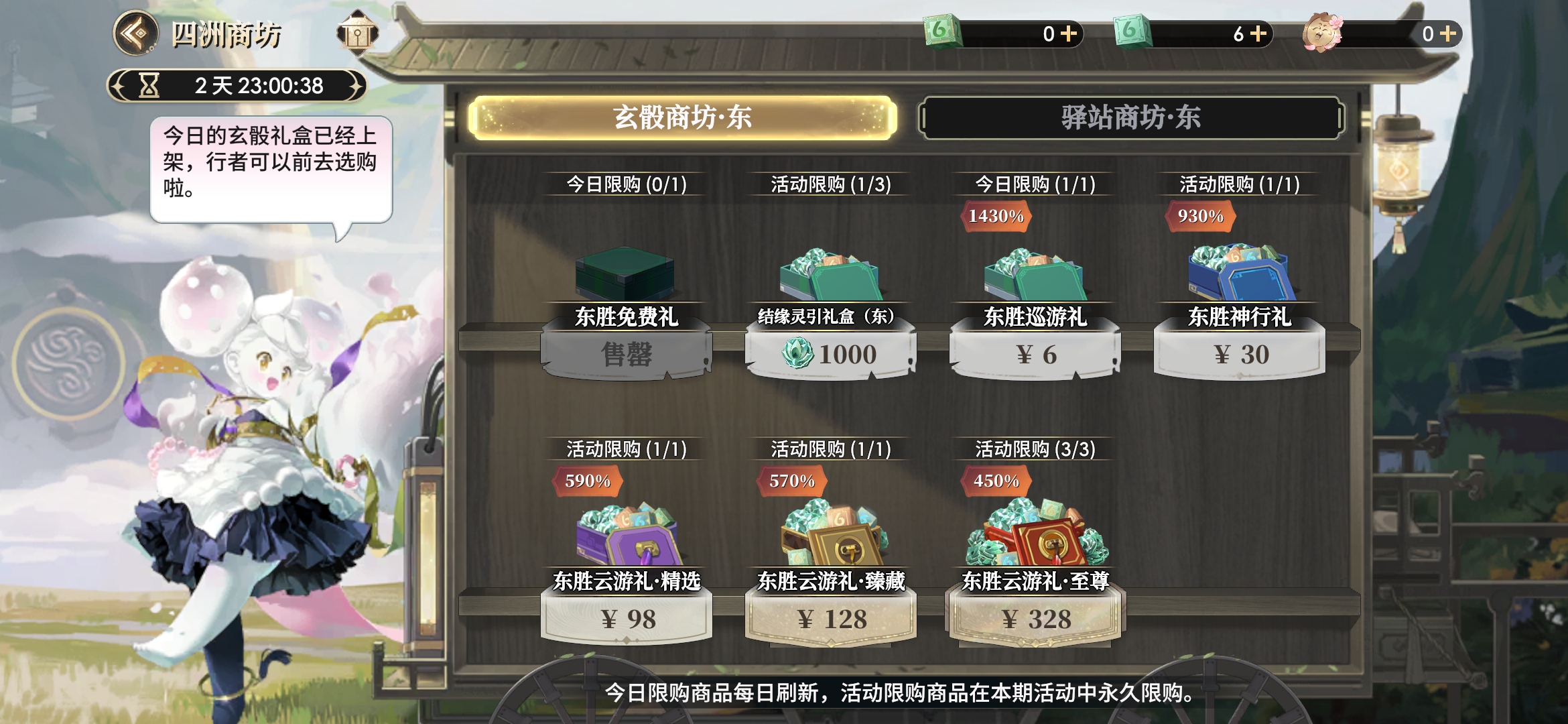 其他五种均为不同价位的氪金礼包,内含数量不等的骰子和云游币。