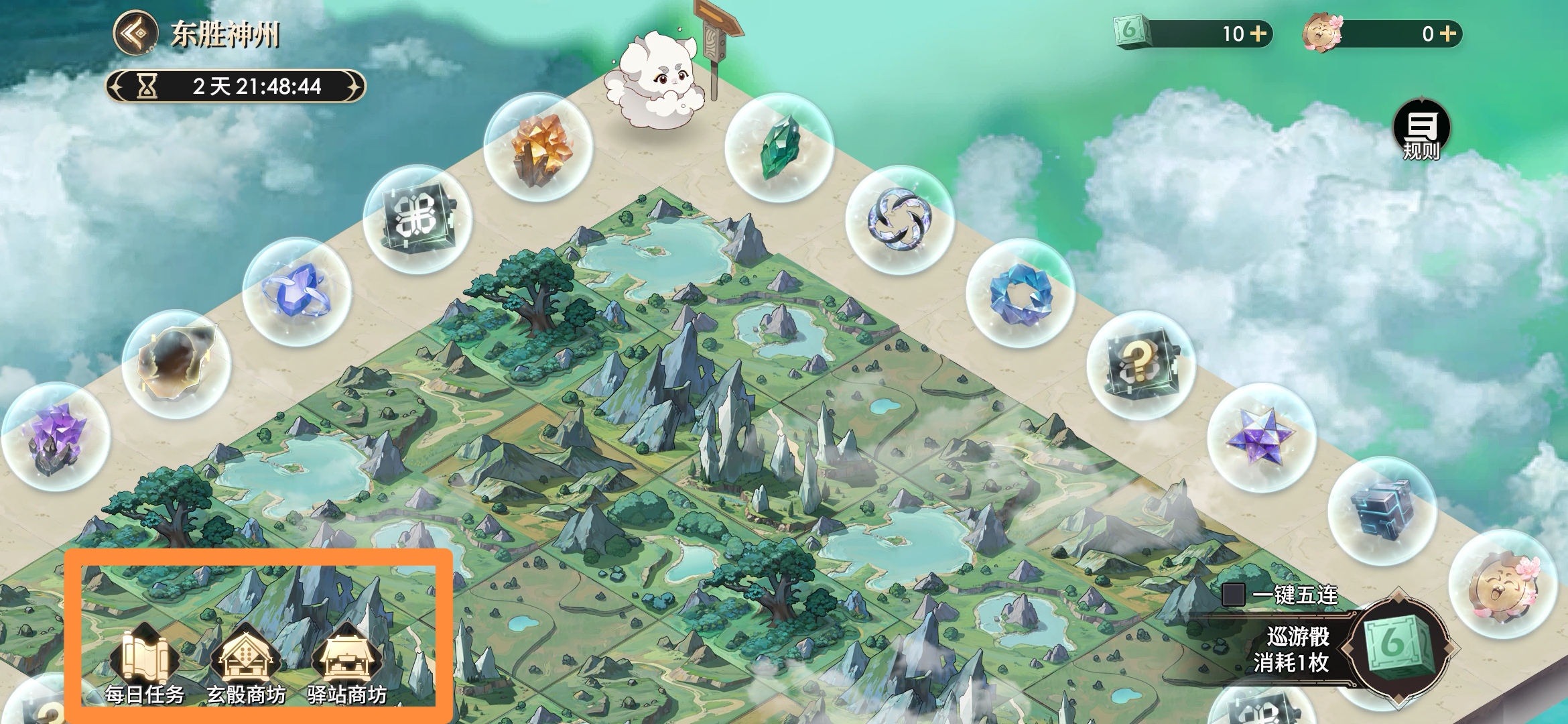 四洲之旅-南,主题对应法宝相关养成资源,主要可获取极品法宝、法宝养成材料等。