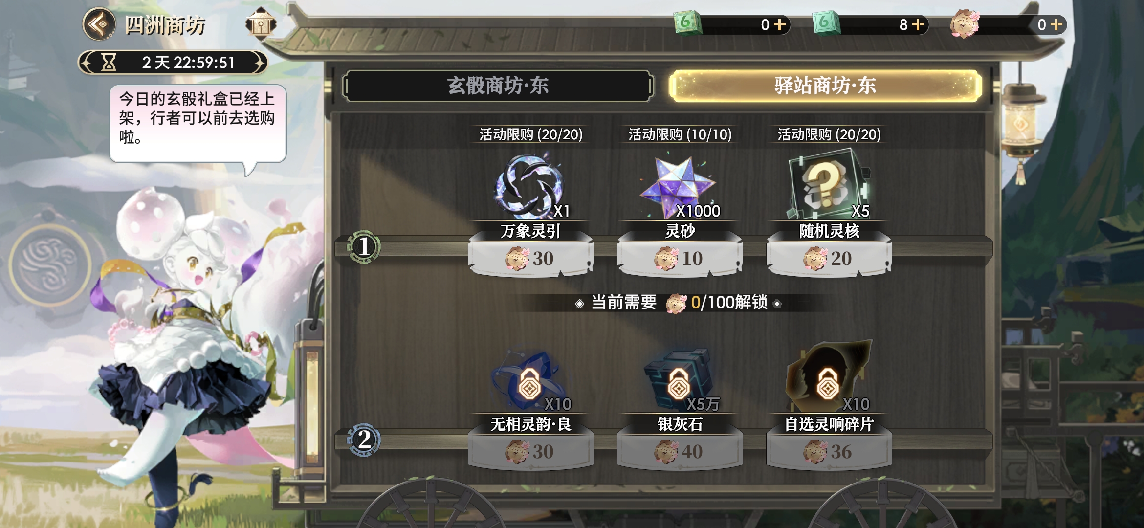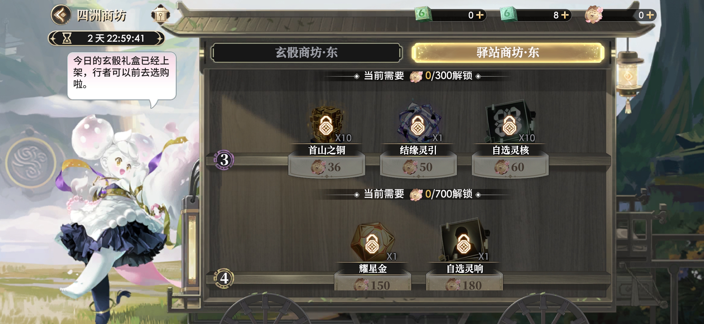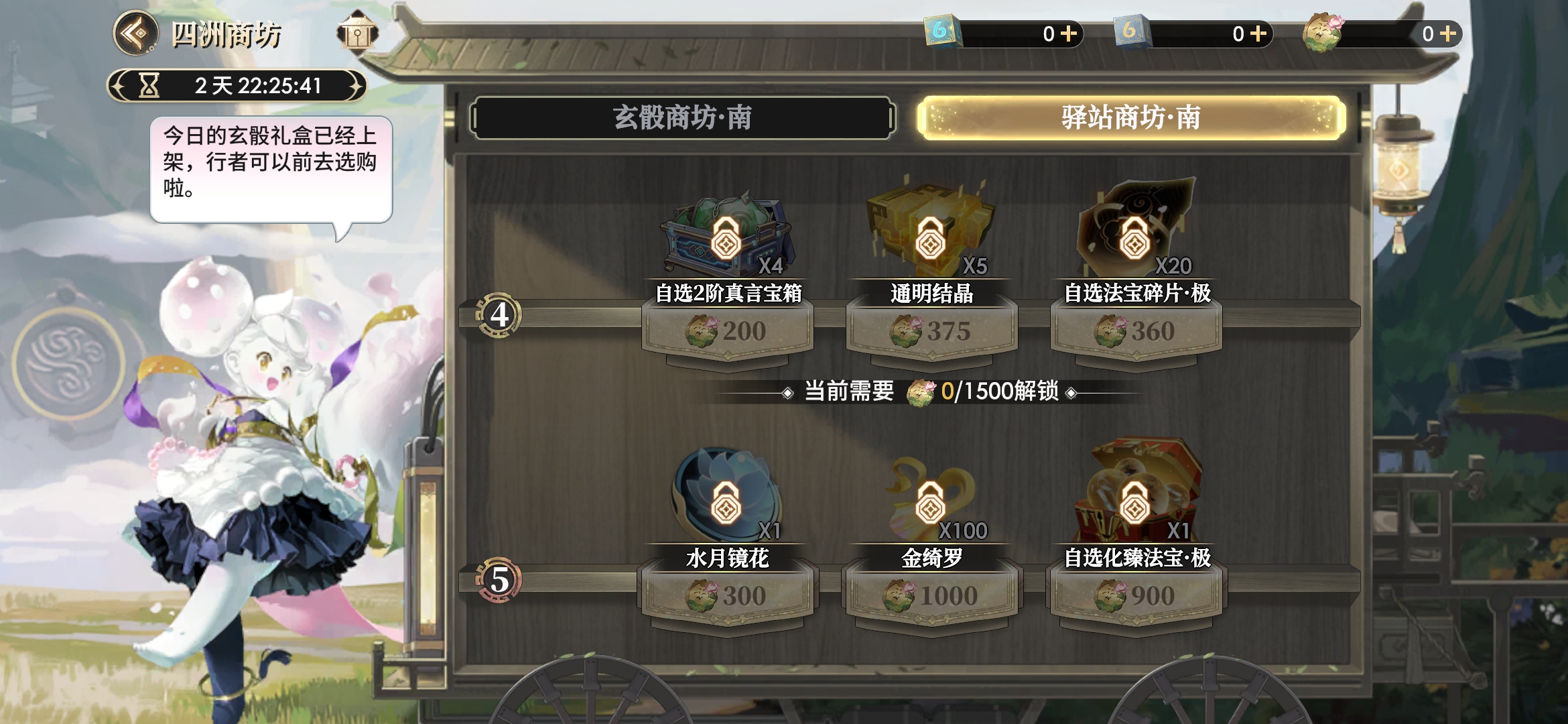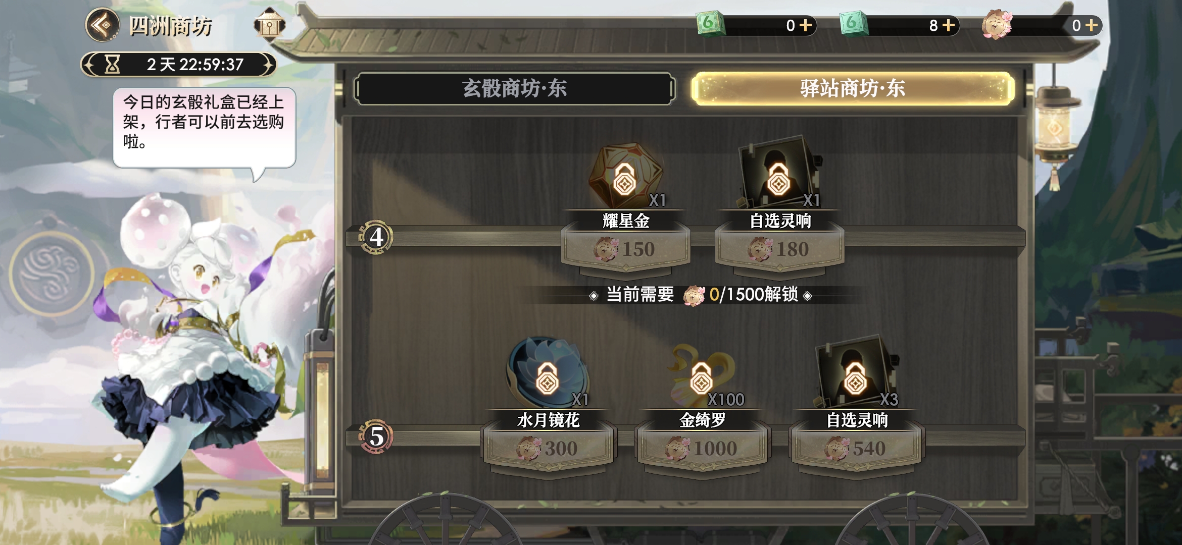 驿站商坊-东可购买的商品共分5级阶,每解锁下一阶都需消耗指定数量的云游币才能解锁。