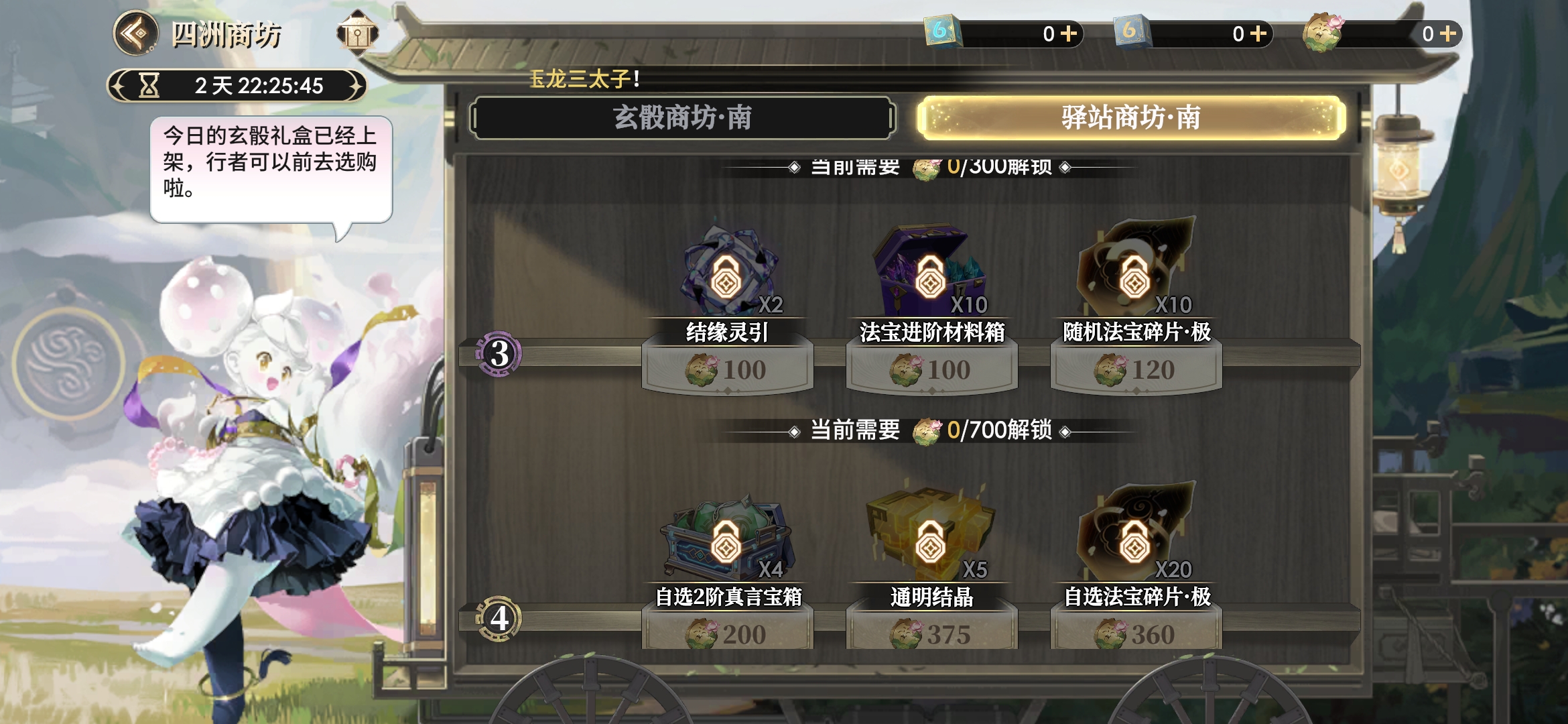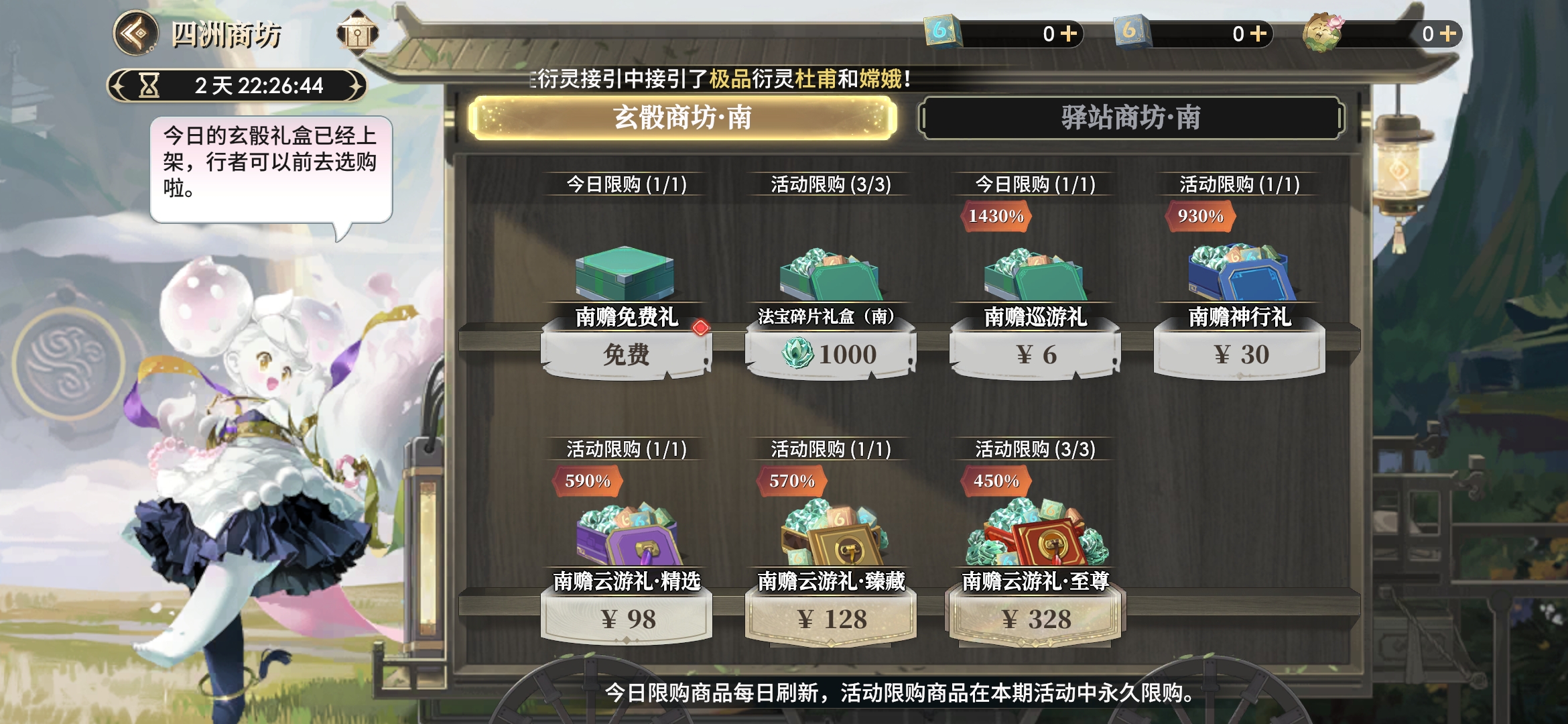 最后的驿站商坊-南也是同款消耗云游币的地方,只是里面可兑换的内容有所改变,核心奖励是第五阶的自选化臻法宝。
