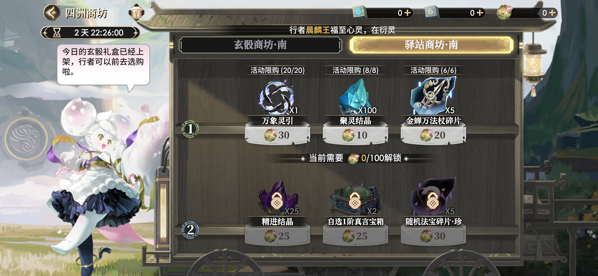 第二阶建议兑换真言箱子+精进结晶+5个万象灵引,凑足300点解锁下一阶。