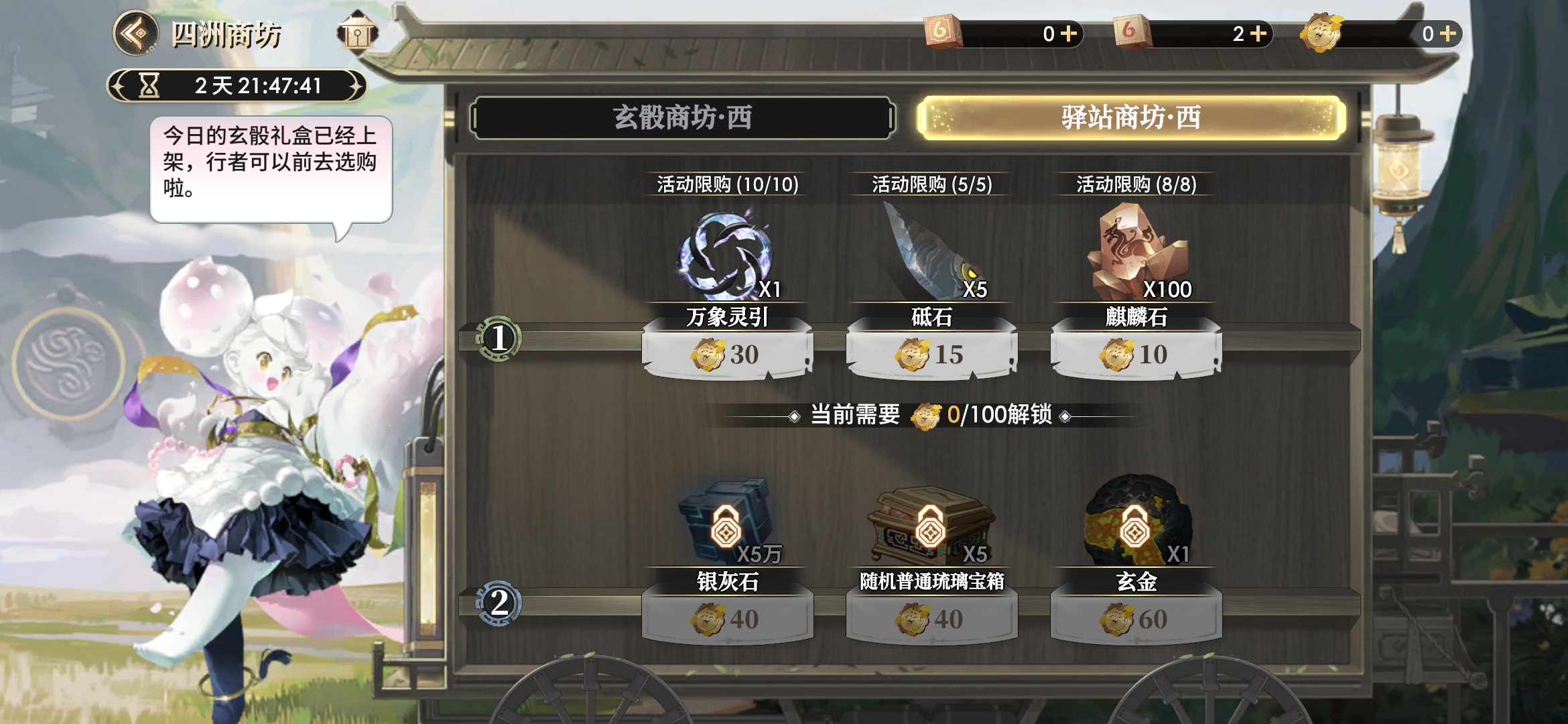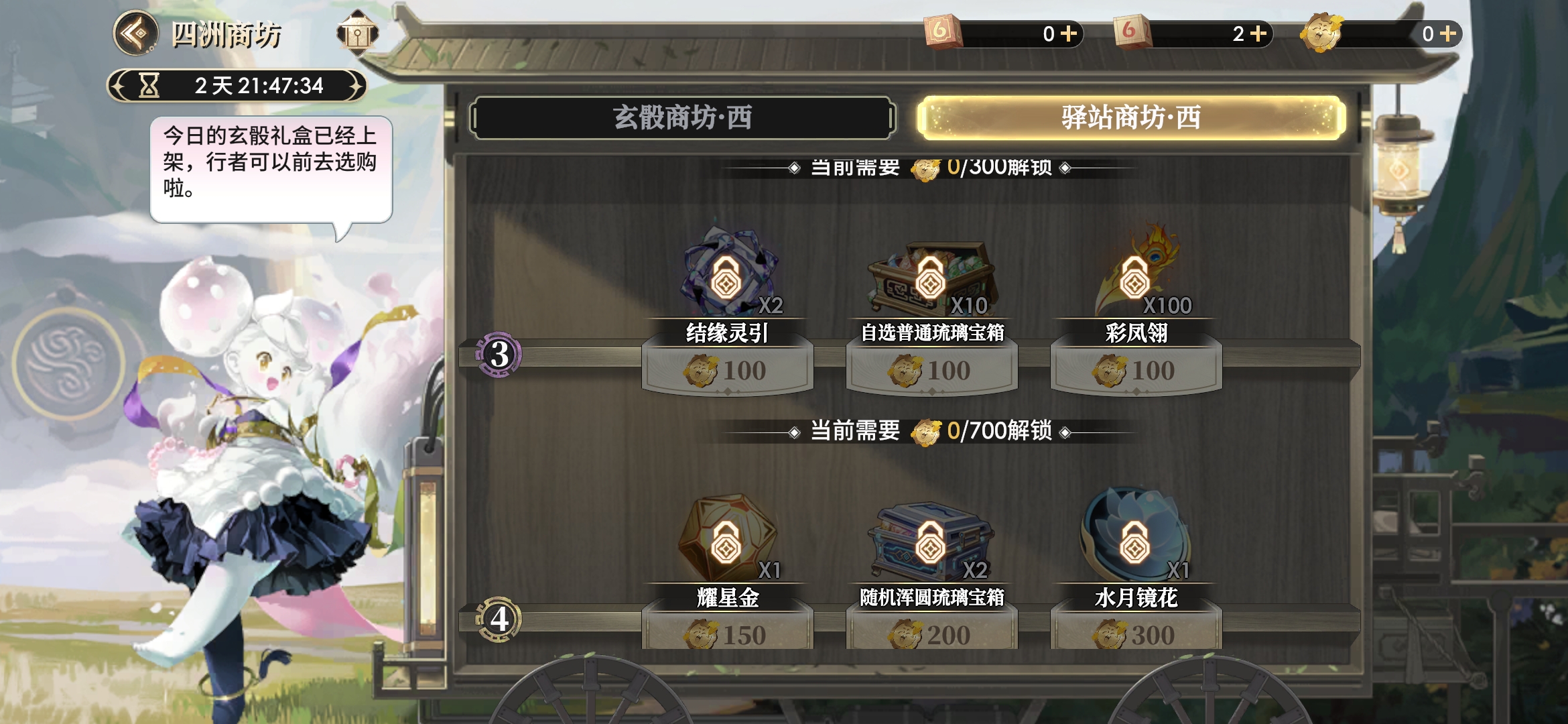 驿站商坊-西的兑换也以水月镜花和自选琉璃这类宝鉴养成材料为主。
