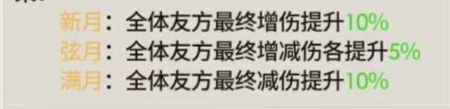 而满月又有减伤效果。增伤和减伤这两个效果绝对是T0,也是最百搭的效果。