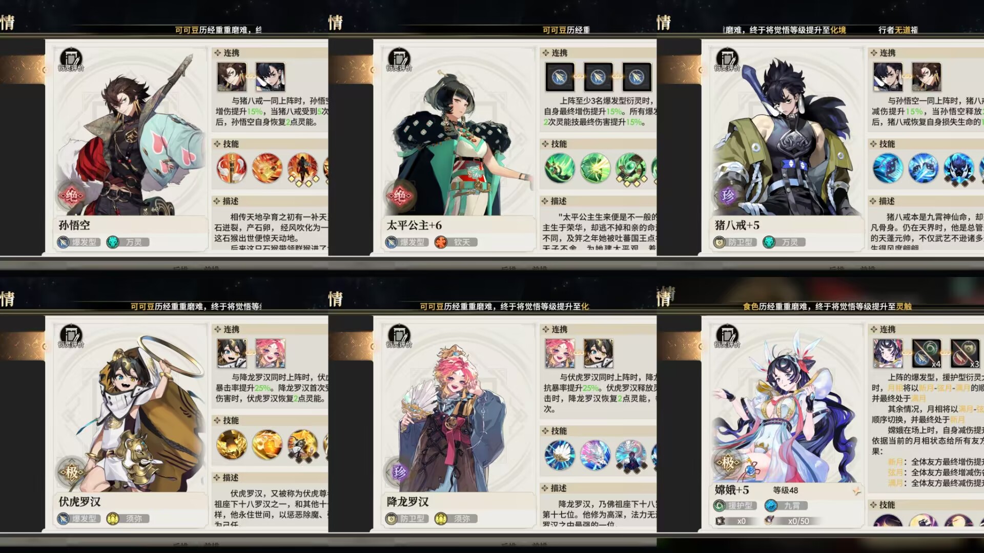 阵容推荐一:孙悟空+猪八戒+太平公主+嫦娥+伏虎罗汉+降龙罗汉。