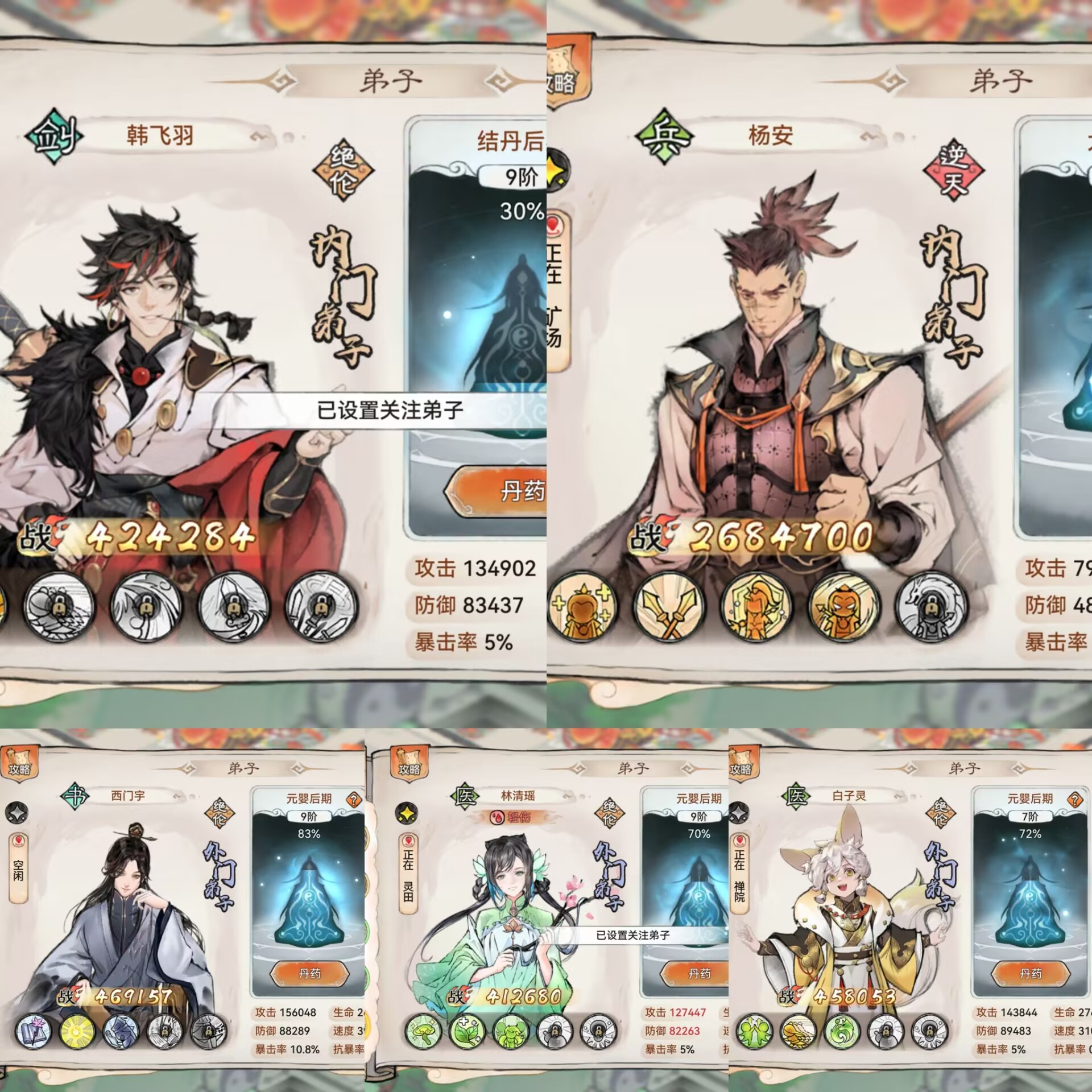 一:主角团都有谁?平民和氪佬使用主角团的区别。首先主角团,是游戏中最为特殊的弟子,因为他们无法改名字。剩下的所有弟子,包括仙缘弟子都是可以自由改名的。