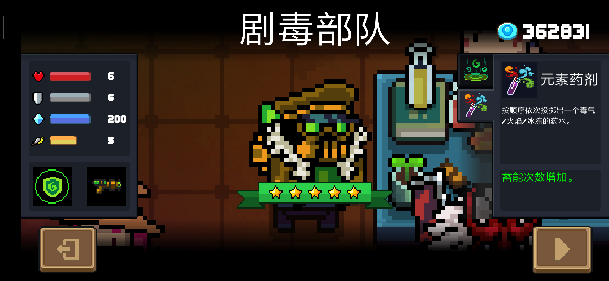元气骑士不仅人物种类多,每种人物还有不同的皮肤,某些特殊皮肤还有炫目的特效,极大的增加了游戏的观赏性,解锁皮肤之后玩家可以随心搭配。