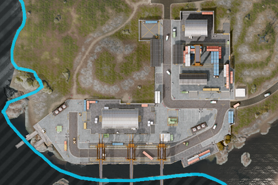 熟悉地图是我们攻略【红河港】的第一步,由于红河港有一大半的区域都靠近海岸,海岸区域的视野更加开阔、不利于隐蔽,战斗更容易发生在密集的仓库和集装箱区域。并且,位于红河港右上侧的仓库区和房顶都会有豺狼佣兵层层把守,砖友们前往此处时需要多加小心。