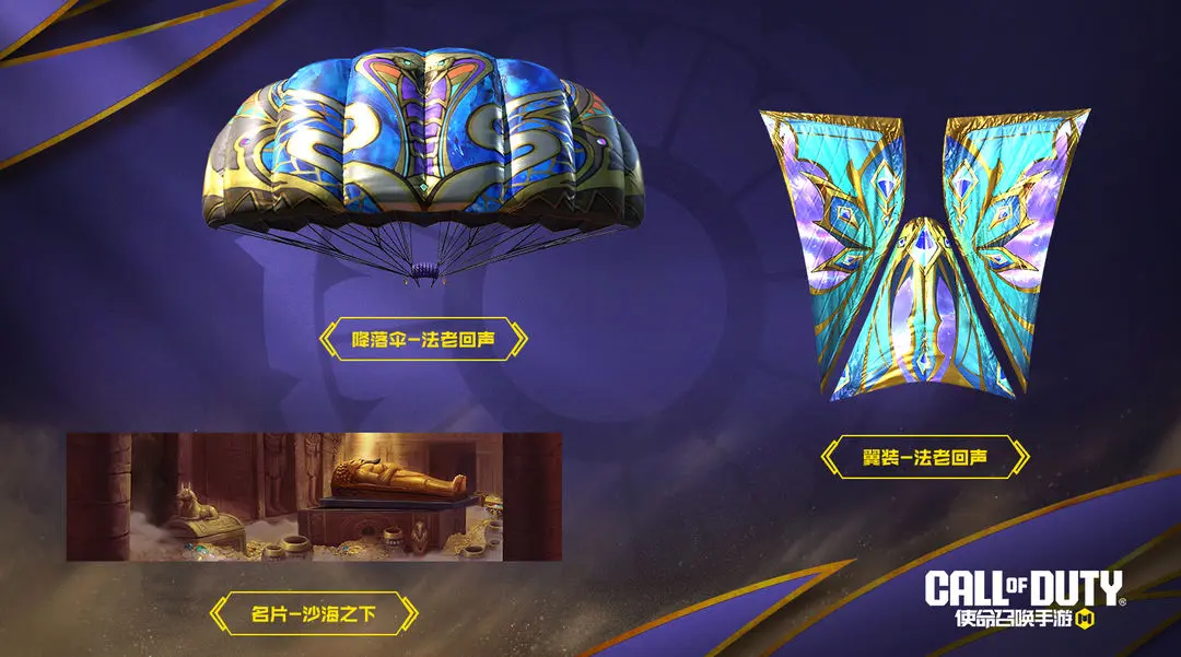 在本次法老秘宝活动中,还有降落伞-法老回声、名片-沙海之下、翼装-法老回声等珍藏之宝,待与战士们一同创造传奇!