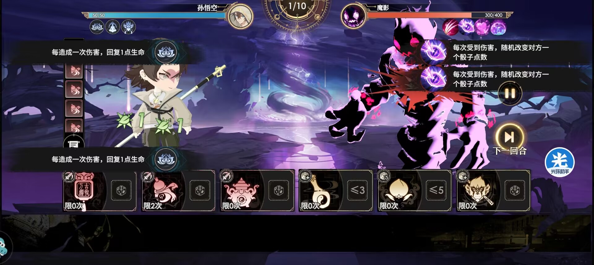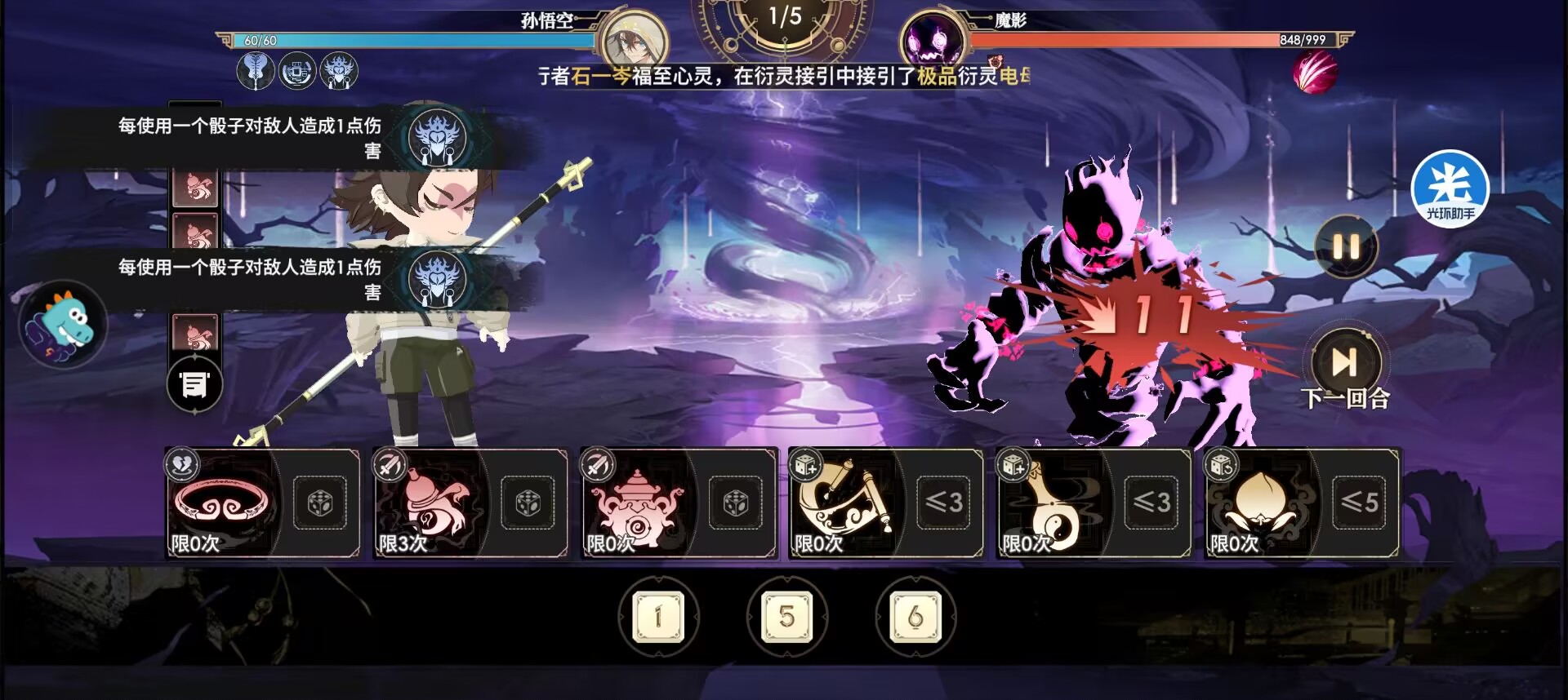 把所有的小数字骰子都喂给鬼葫芦打伤害。