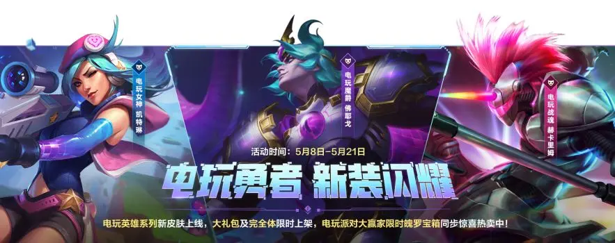 与此同时,全新电玩系列皮肤也在超值出售中!截止至5月21日23:59分,电玩系列皮肤大礼包及完全体礼包限时上架,更有电玩派对大赢家限时魄罗宝箱上架商城,同步热卖中!