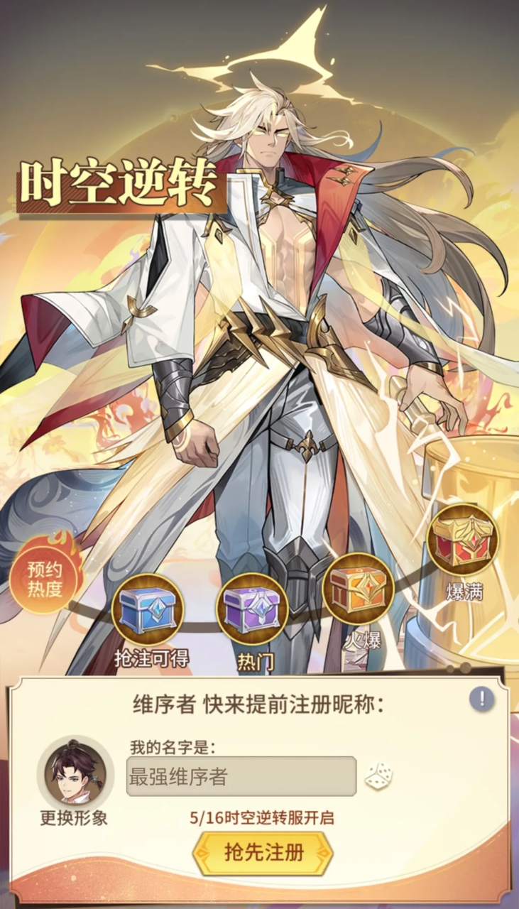 即日起至5月16日0点,维序者们快来「抢先注册」新服昵称,达到一定热度即可在「时空逆转」服继承对应奖励~