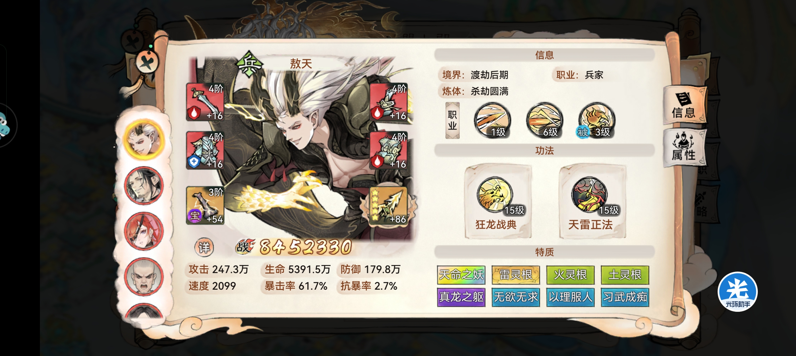 最后是红尘三千提供攻击力,伤害没有暴击的话还可以增加本次技能的伤害,也是替代孤途的下位道兵。