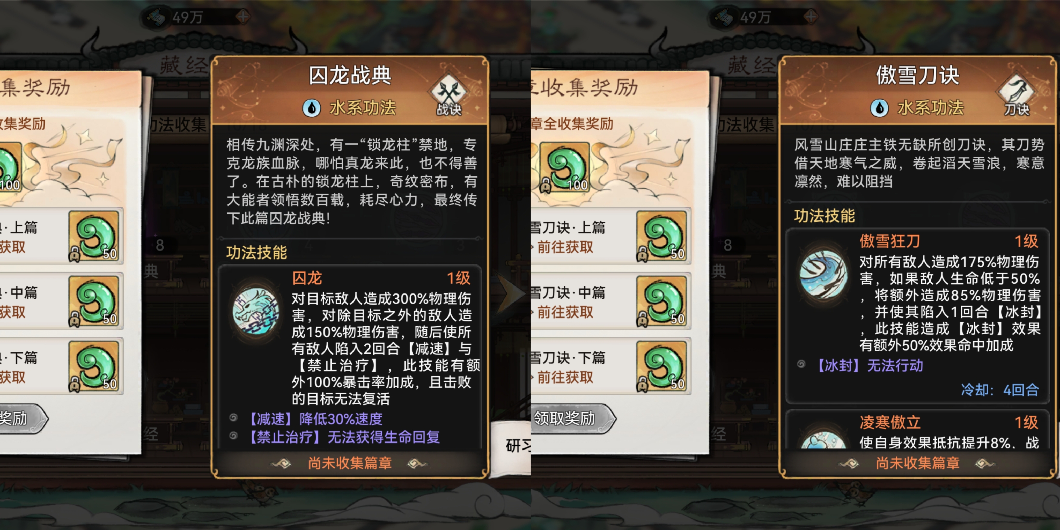 不过金系的这两本由于没有破防、无视伤害减免以及克制复活等效果,其实总体来说是没有水系的功法好用。