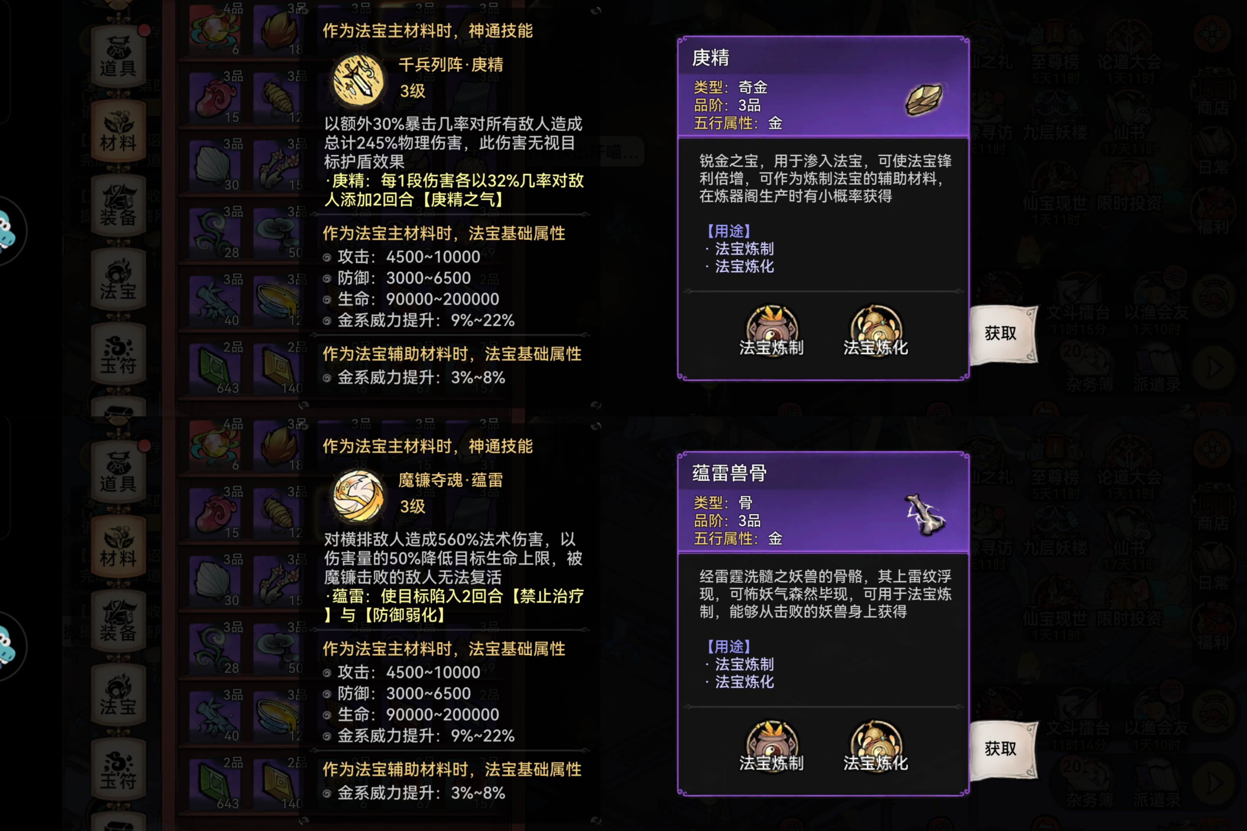 ⭐注意如果佩戴了金系功法的,记得换成金系法宝。