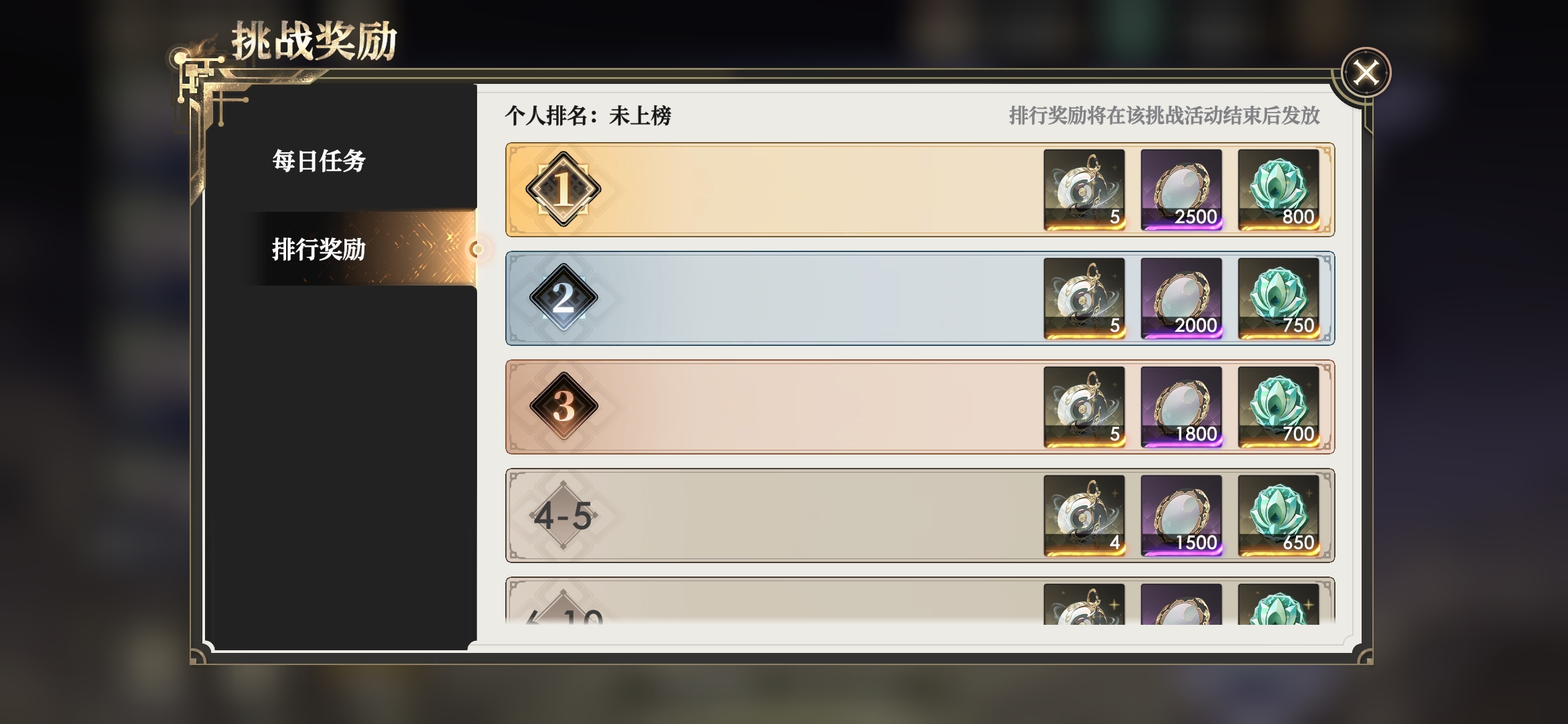 每个BOSS结束时还会根据排名获得丰厚的排名奖励,以前50名这档来算就有3个镜花珏+900瑶台鉴+500玉宝相。(排名越高奖励越好)