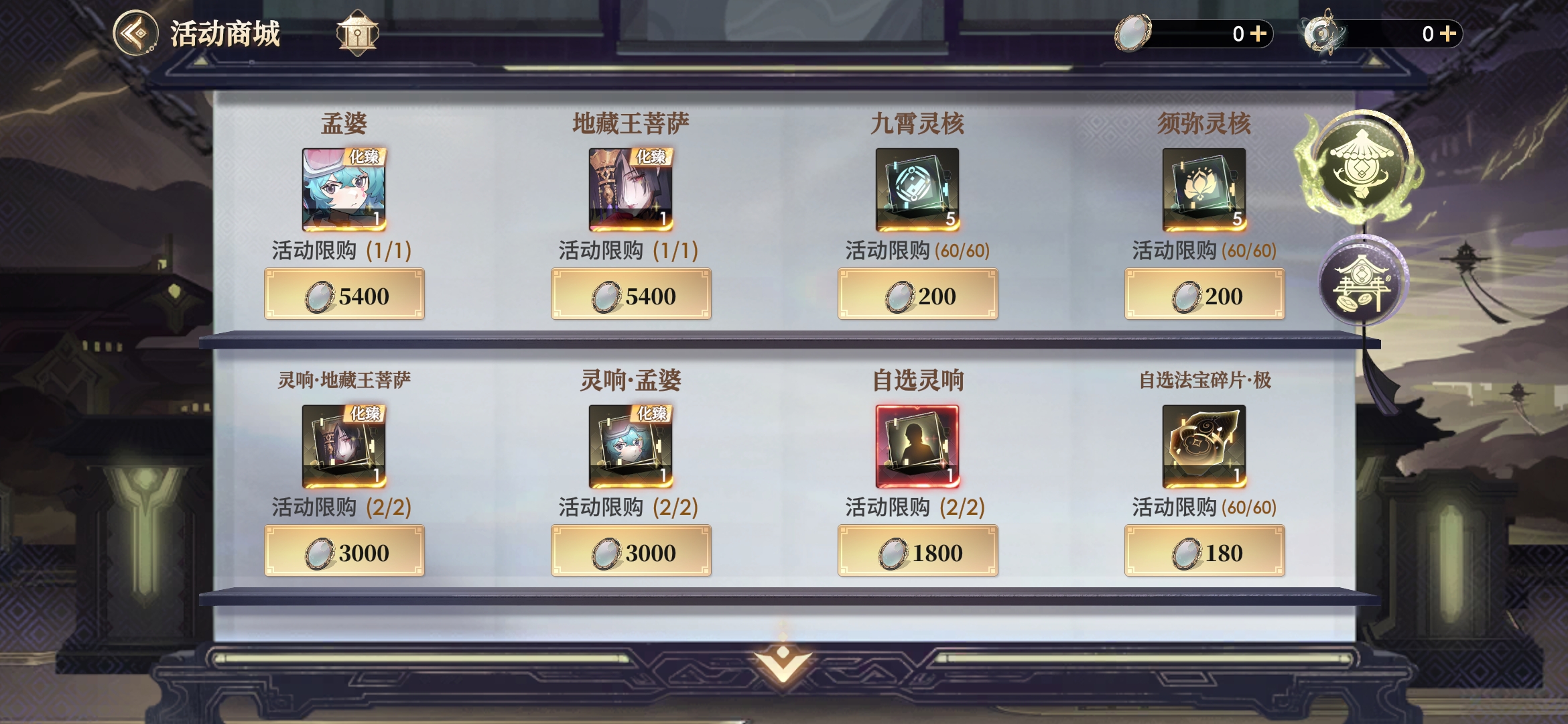 3、化臻衍灵除限定活动抽取外,还可通过普池180抽保底送,拍卖行竞拍等渠道获取,甚至汇灵阁还能吃席,后续的太初灵器照骨明镜应该也能获取养成难度并没有想象中那么高,平民也可以养。