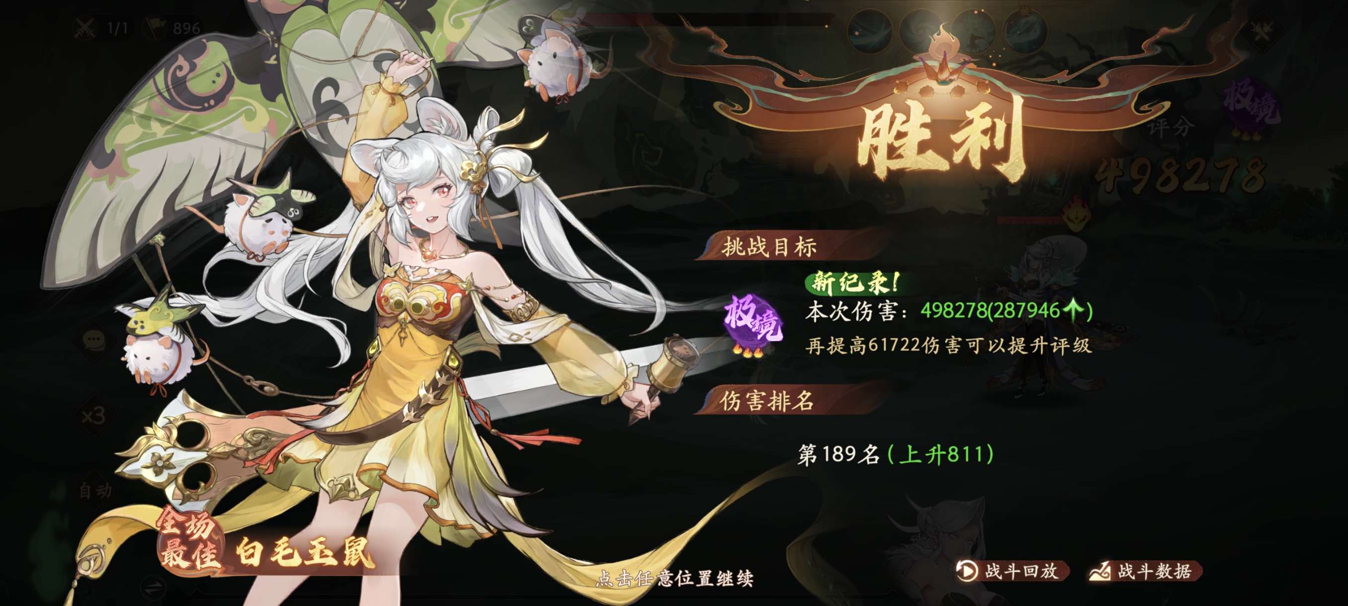 那就直接按第一阶段的阵容和打法打就行了,白毛玉鼠依然是yyds!如果能在5.28前把玉鼠升到彩5,伤害会有巨大提升,不过也不用强求。
