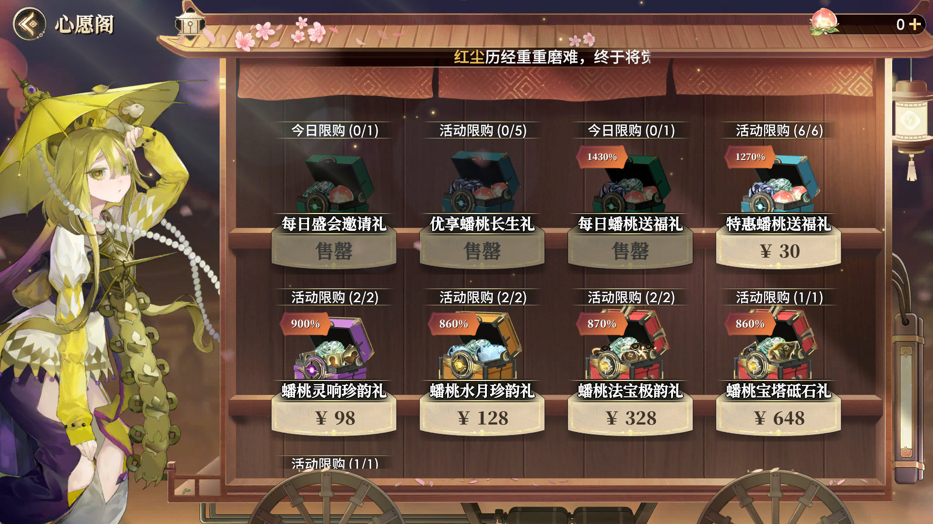 蟠桃会活动现已开启,全新小游戏玩法“桃之夭夭”等你来玩!同时丝路远道、聚宝结福玩法升级!全新地图体验随活动限时开启!