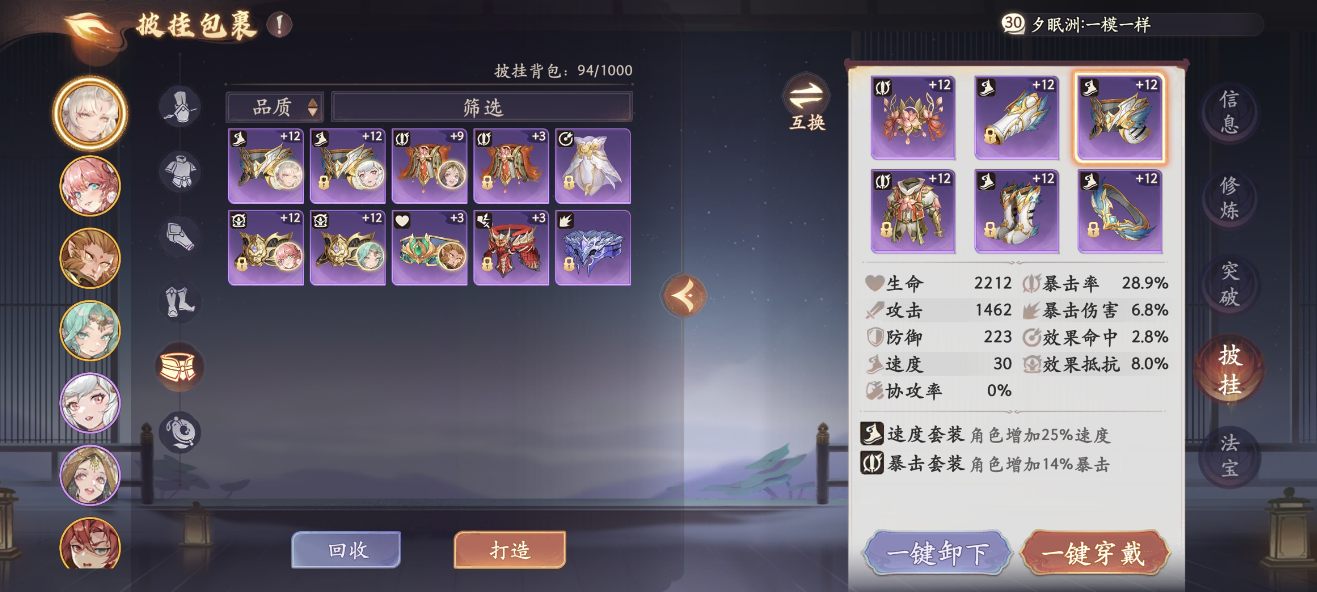 高速C位(如哪吒嫦娥六耳等)优先选择速度、双暴、大攻击