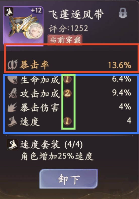 高速C位,主词条优先选择大攻击,副词条优先选择速度、双暴