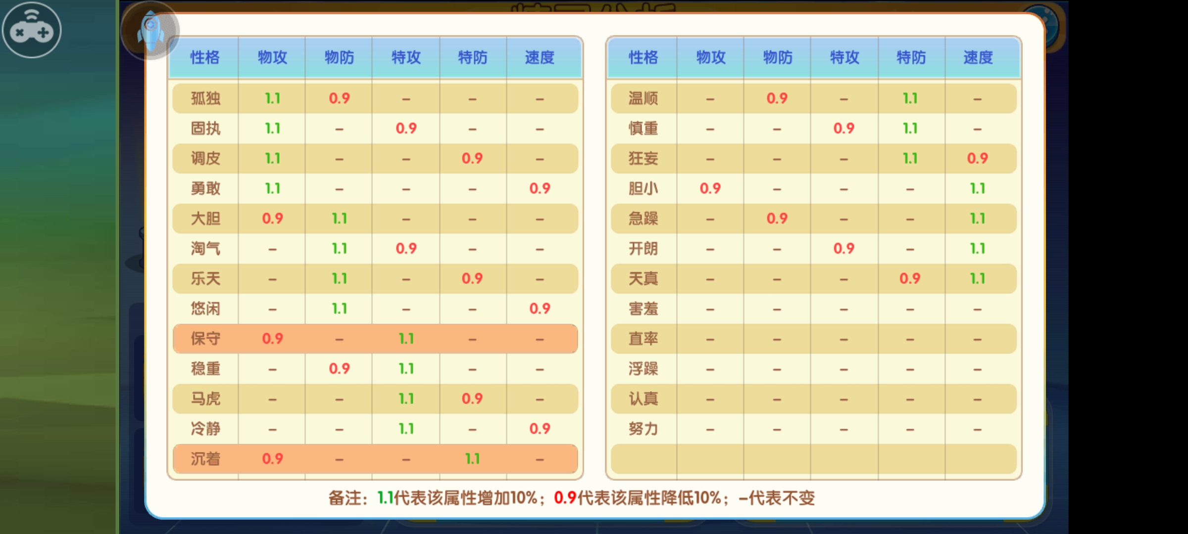精灵性格携带物及配招