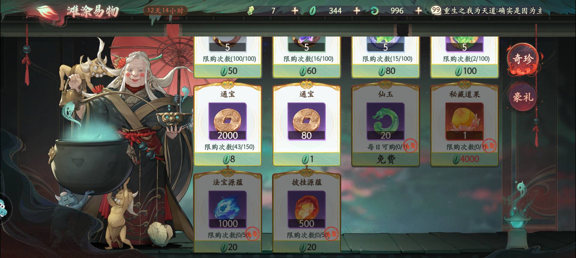 ③没有氪30元委托的平民玩家,可以优先考虑兑换命格材料、道果。这些核心材料,来帮助我们前期发育。