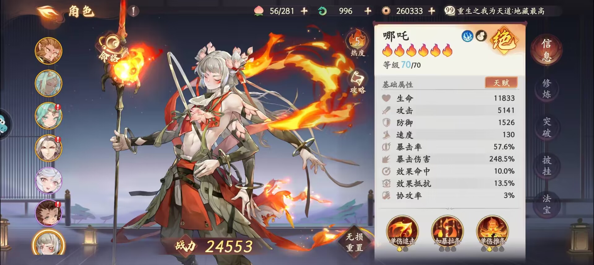 比如:哪吒、地藏王、老鼠精这种现版本就业率拉满的角色。