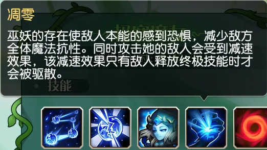 巫妖的4技能——凋零,减少我方全体魔抗,同时攻击巫妖的人会受到减速效果。