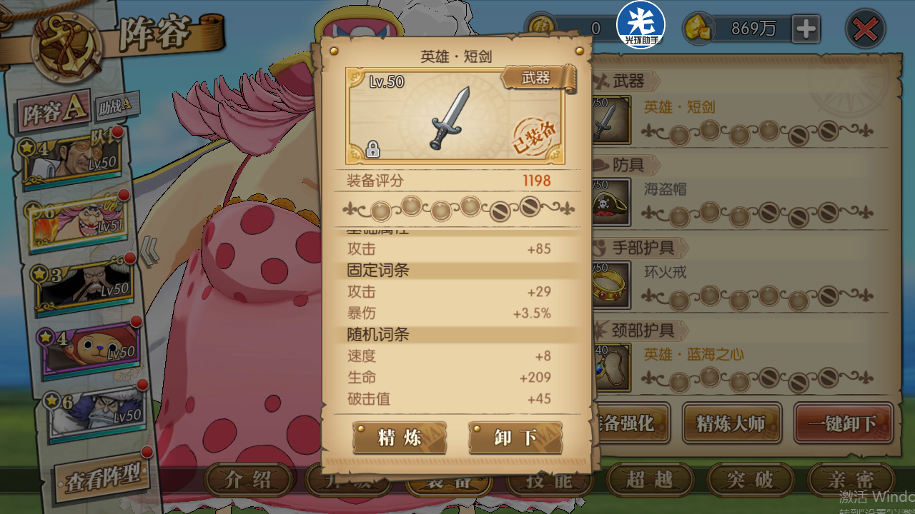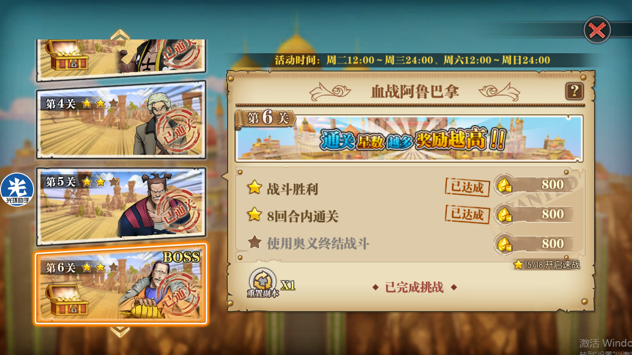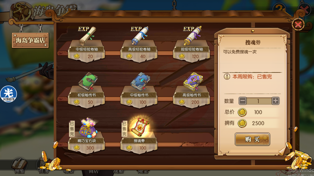 【4、海岛争霸】能肝则肝,尽量把每周30张附魂券、5个宝石袋换了。如果你想买角色,就看你个人造化了,买的话建议买白胡子即可。花剑已经被削弱几次了。