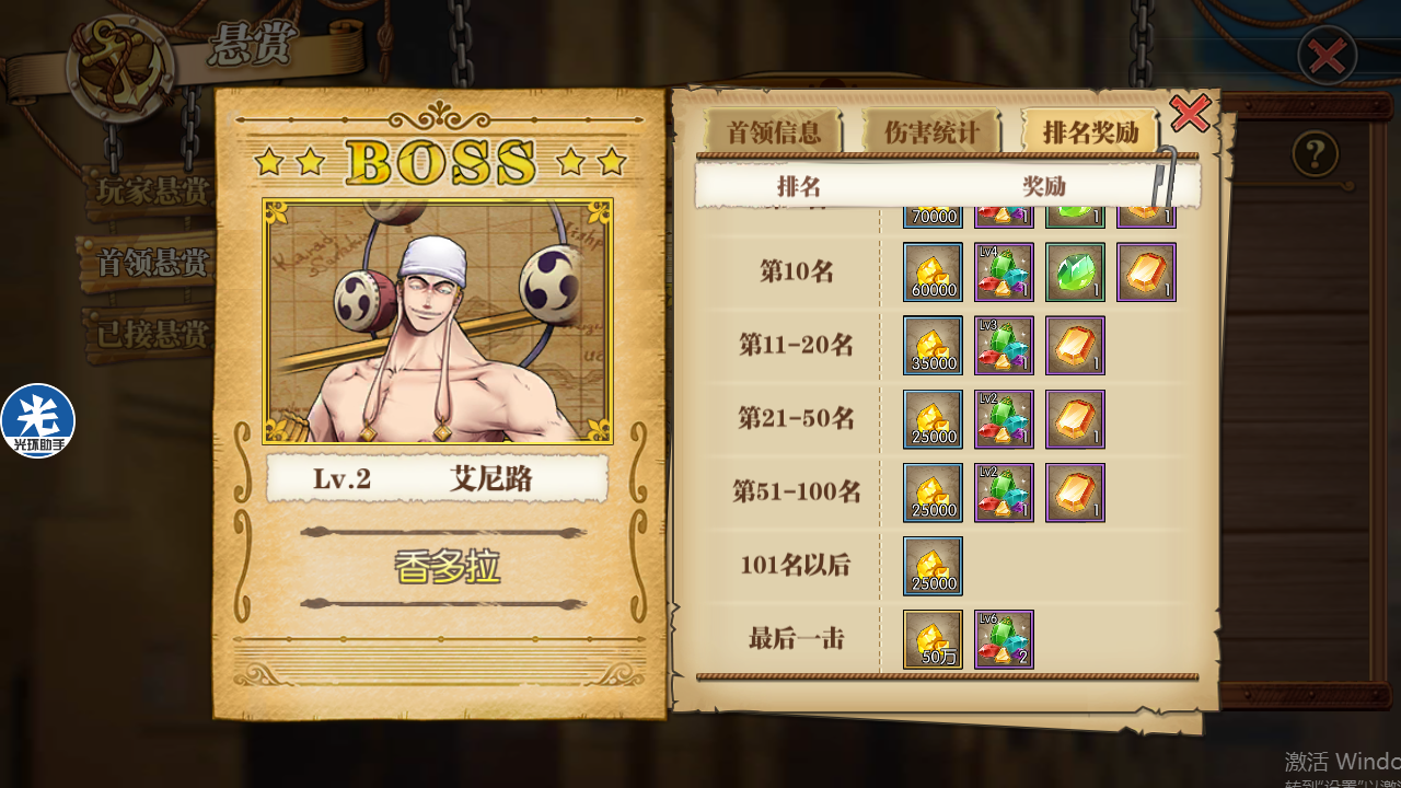 【6、首领悬赏】还是那句话,能摸一下是一下,哪怕只有前一百名,有点奖励也总比没有好。当然,能打高排名的就坚持打,这是很好的资源来源。