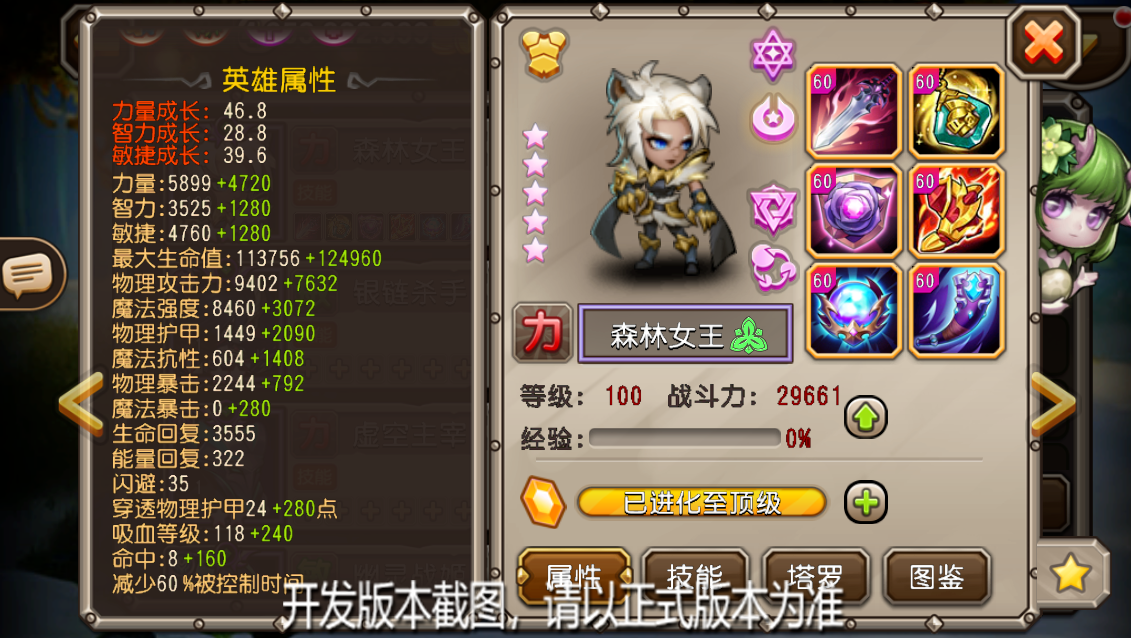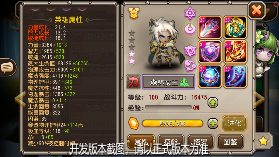 4阶:战斗开始时,森林女王会拥有至少500点能量,且虎形态提升的生命与攻击力增多。