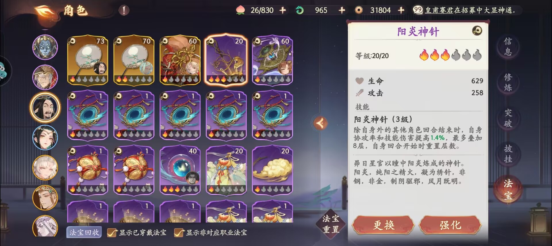 就得搭配嫦娥的【流萤扇】以及星官的【阳炎神针】。